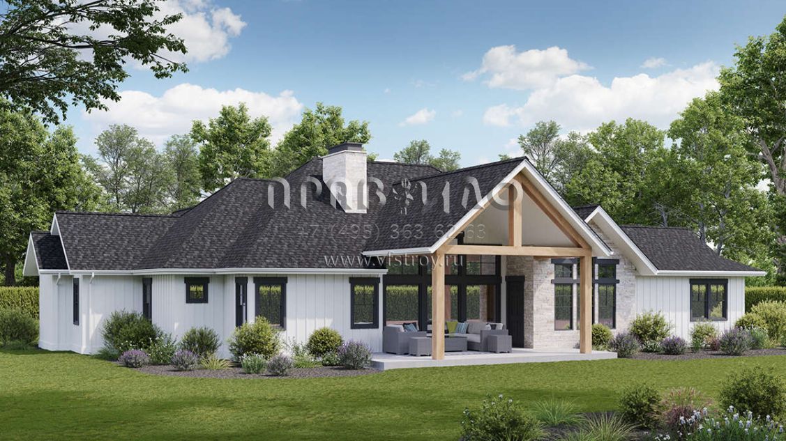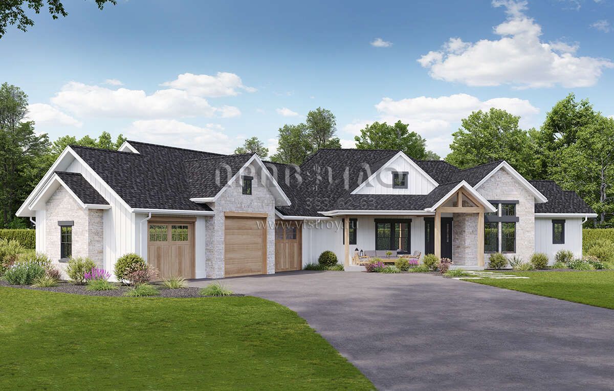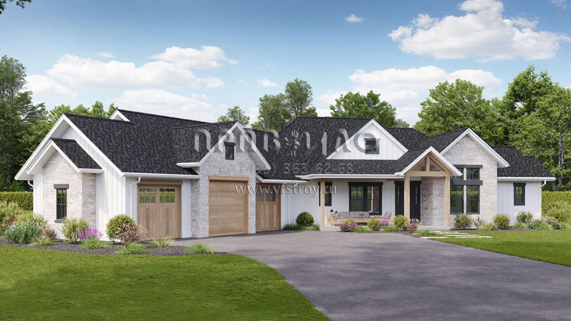 Проект одноэтажного дома с гаражом на три и более машин в современном стиле S5-279 (5631-00250)