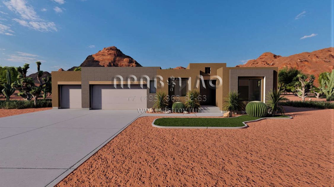 Проект одноэтажного дома с гаражом на три и более машин в американском стиле S5-279 (6422-00050)