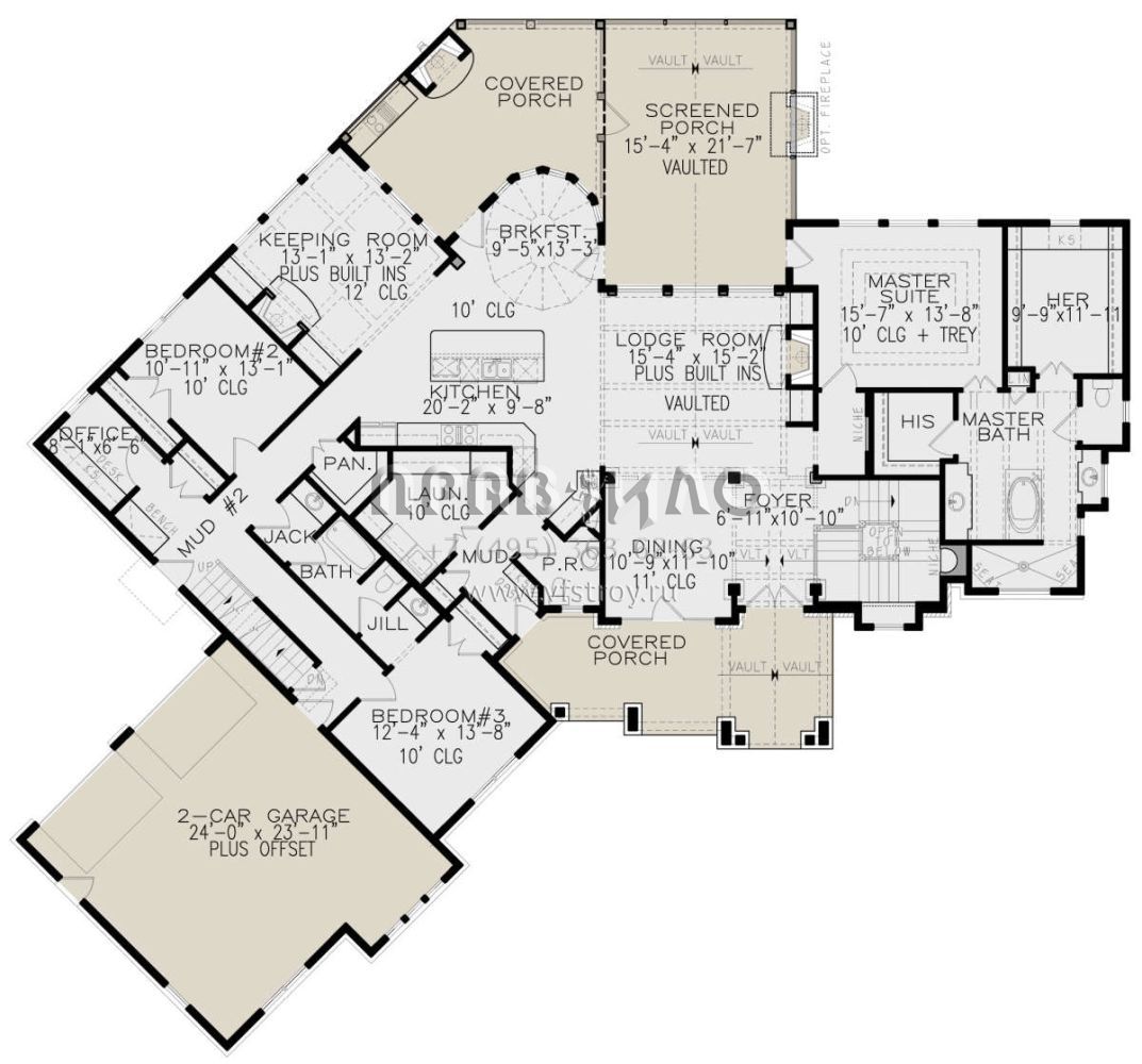 Поскольку этот проект разрабатывался иностранными архитекторами, для строительства дома требуется переработка проекта под действующие в России нормы. Данные визуализации проекта представлены для ознакомления с концепцией проекта. Проект разработан американским архитектурным бюро и представлен America's Best House Plans.