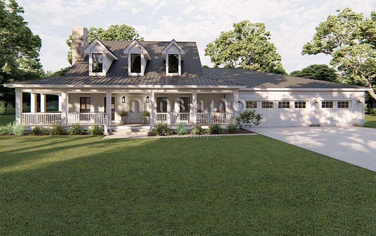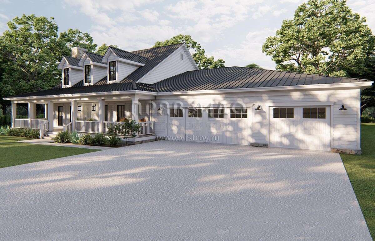 Проект одноэтажного дома с гаражом на три и более машин в стиле Ранчо S5-279 (8318-00285)