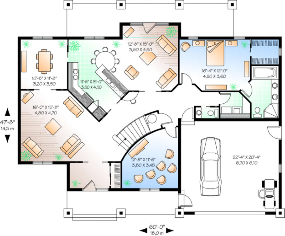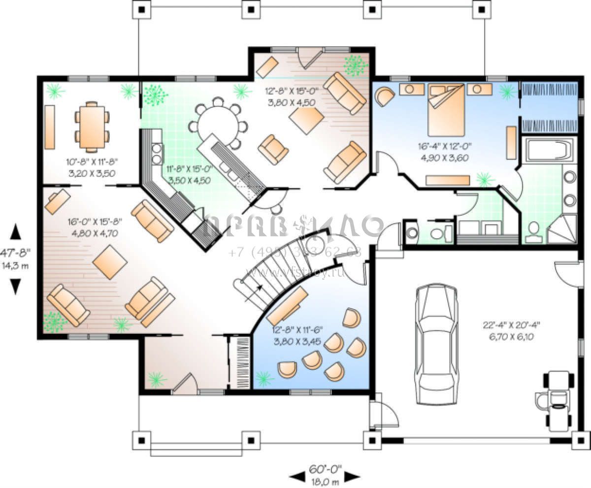 Поскольку этот проект разрабатывался иностранными архитекторами, для строительства дома требуется переработка проекта под действующие в России нормы. Данные визуализации проекта представлены для ознакомления с концепцией проекта. Проект разработан американским архитектурным бюро и представлен America's Best House Plans.