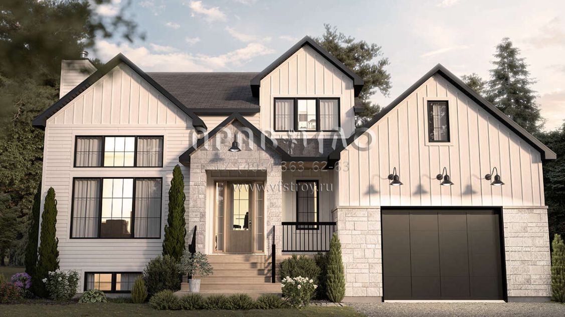 Проект двухэтажного дома с гаражом на одну машину в современном стиле S5-280 (034-01323)