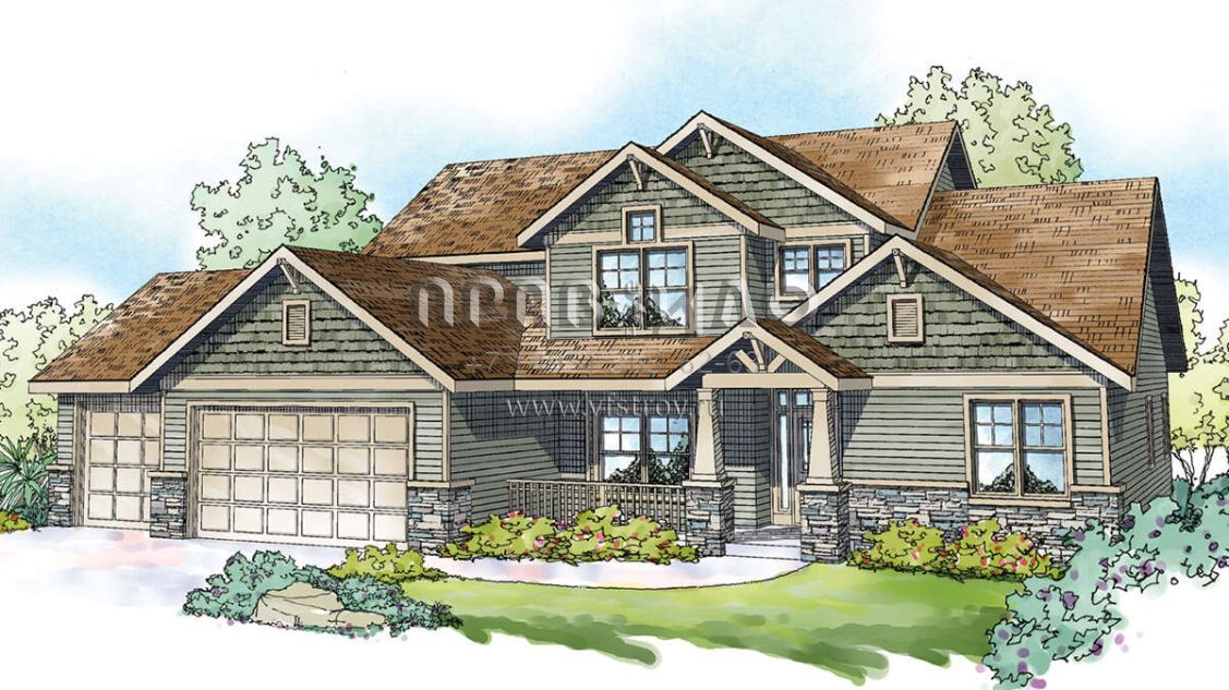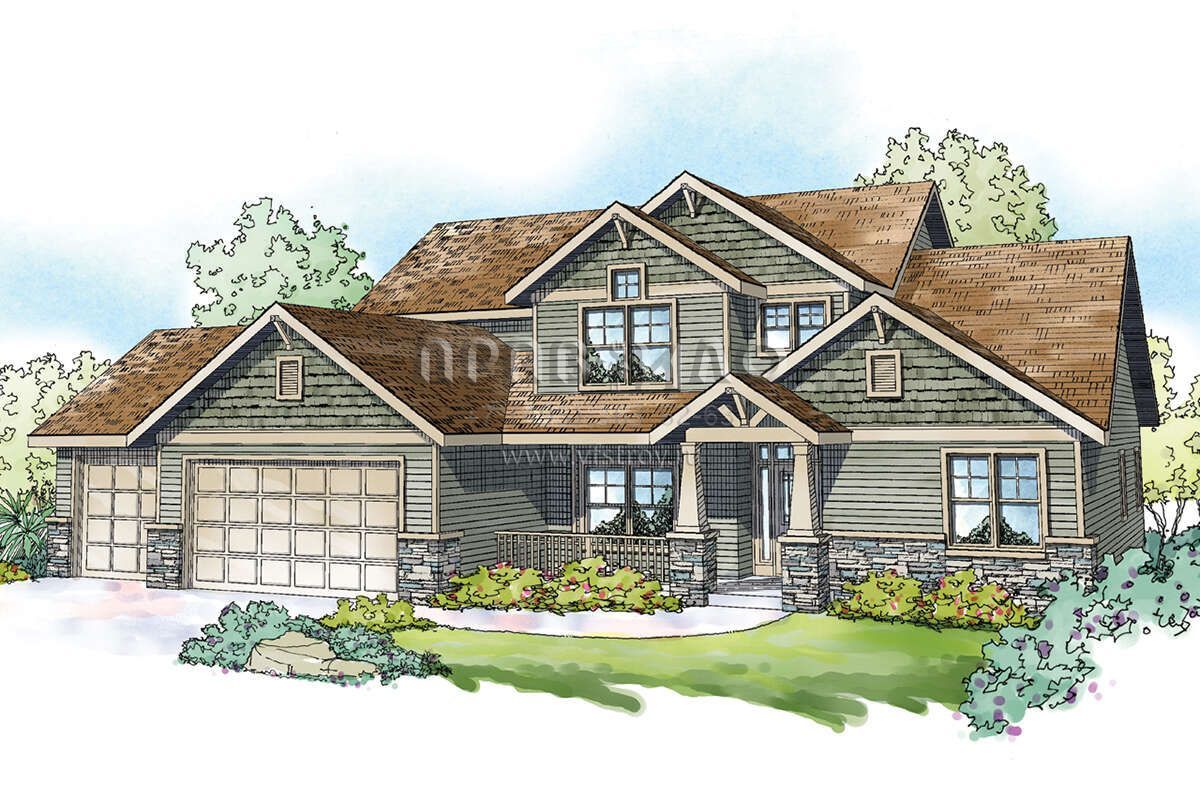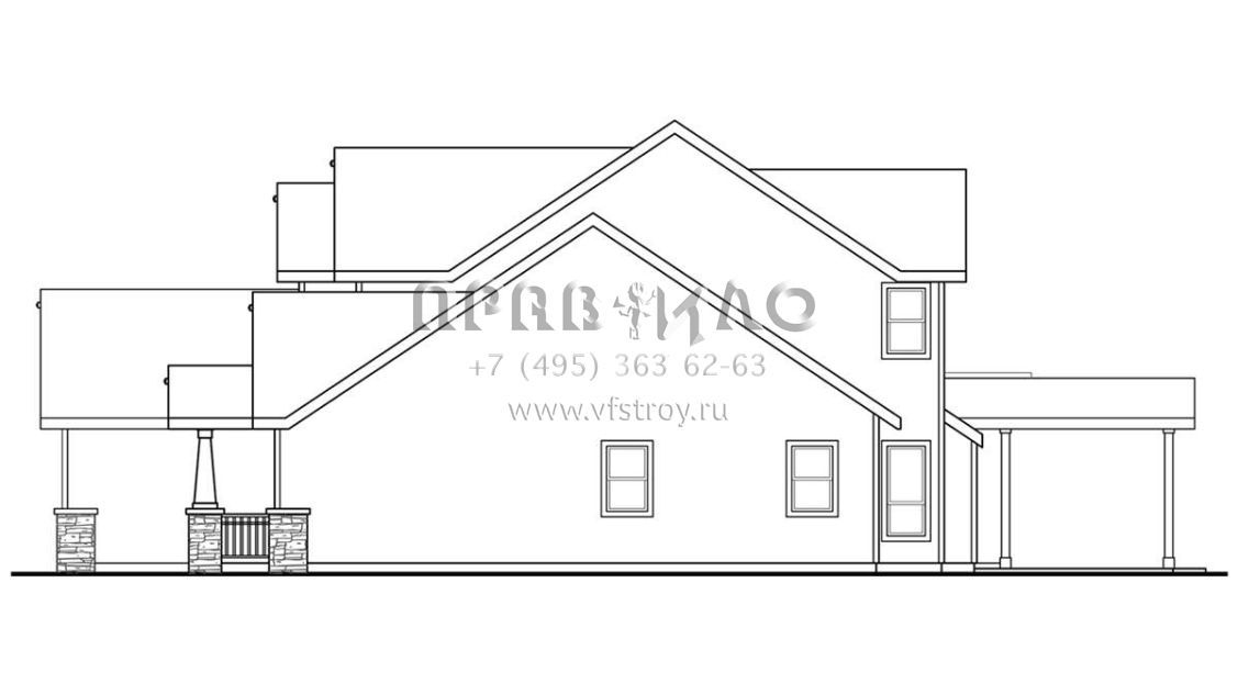 Проект двухэтажного дома с гаражом на три и более машин в американском стиле S5-280 (035-00899)