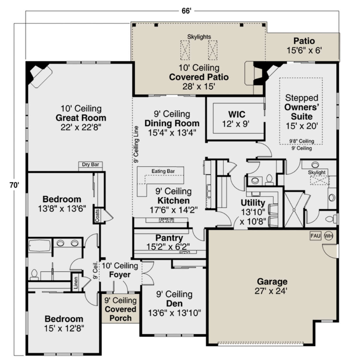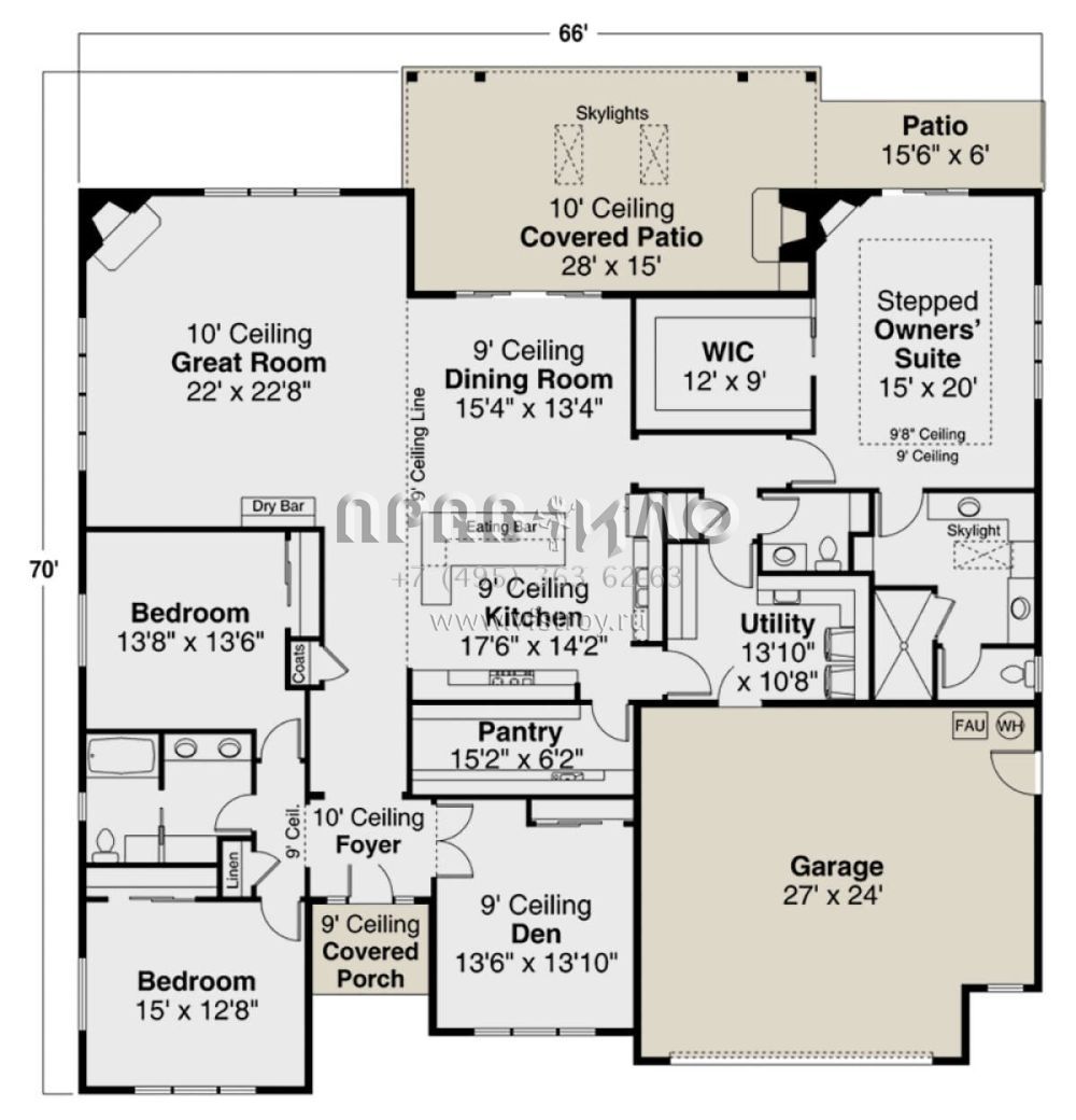 Проект одноэтажного дома с гаражом на две машины в стиле Ранчо S5-280 (035-00928)