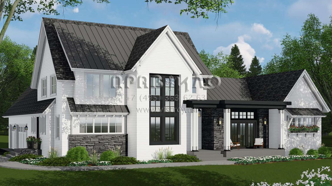 Проект двухэтажного дома с гаражом на три и более машин в современном стиле S5-280 (098-00307)
