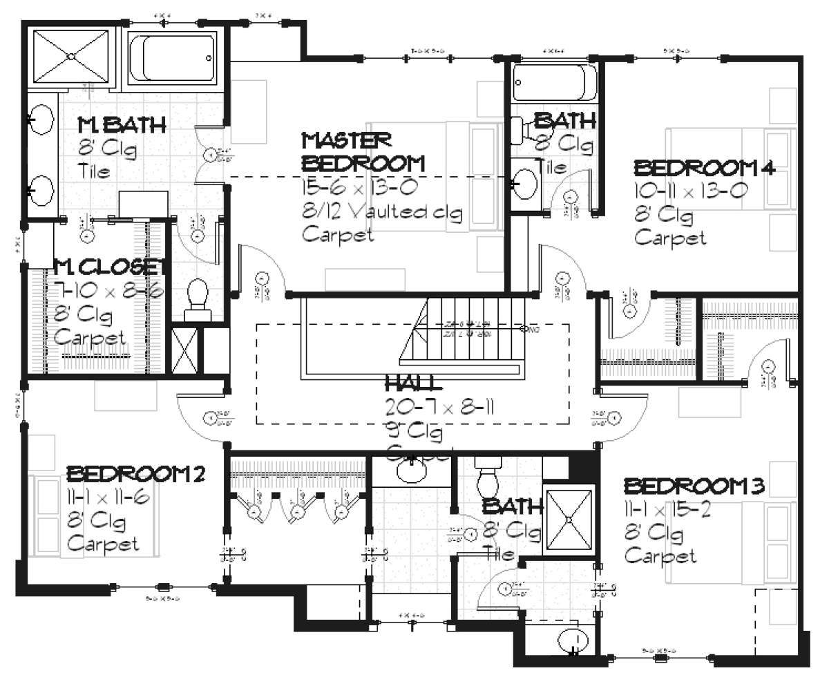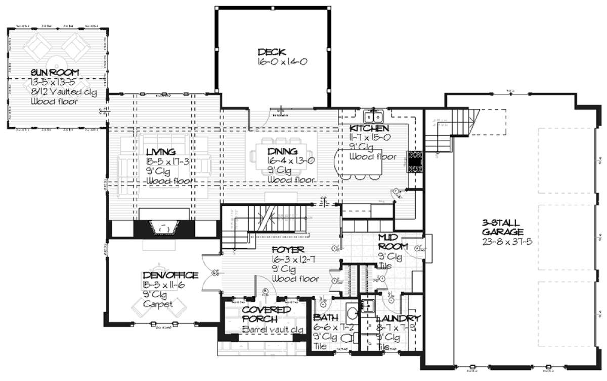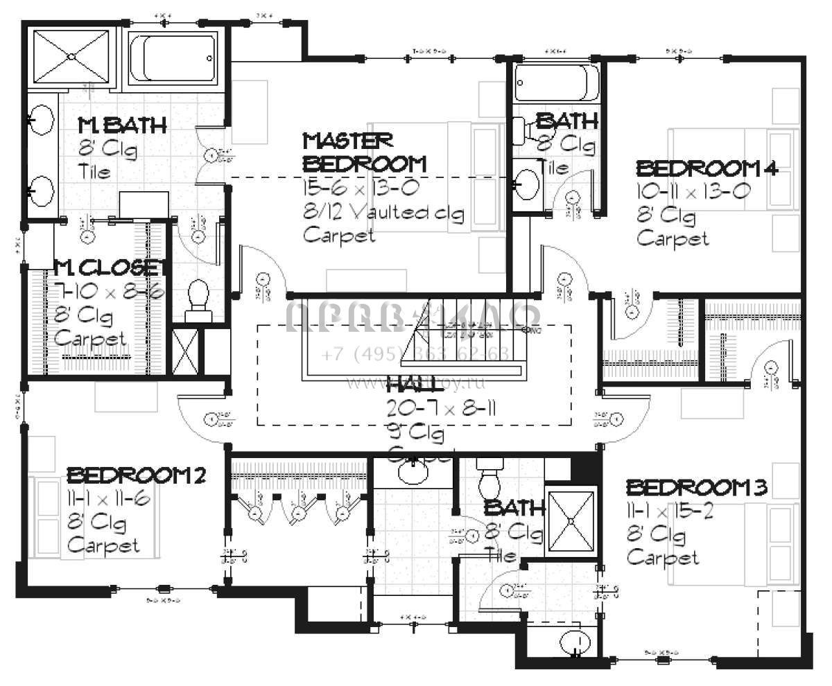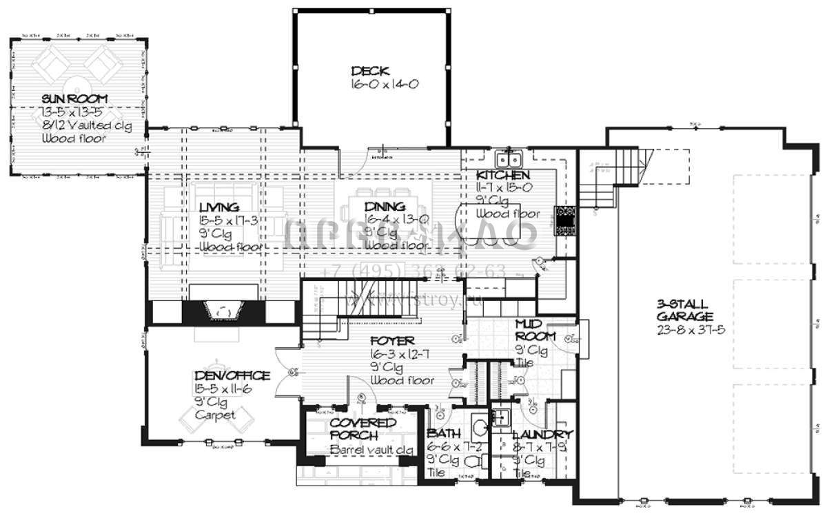 Проект двухэтажного дома с гаражом на три и более машин в стиле Ранчо S5-280 (1637-00030)