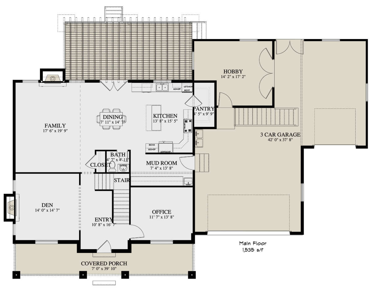 S5-280 (2802-00057) Это иностранный проект, для которого требуется адаптация под нормы, действующие в Российской Федерации. Вы видите проект дома в стиле Ранчо. В этом доме сочетаются черты сельской постройки и аскетичность лофта. Внутри жильцы смогут проводить время с максимальным комфортом. Обратим внимание, что сейчас на планировках все размеры представлены в футах. Для перевода в метры вам необходимо значение в футах умножить на 0,3048.