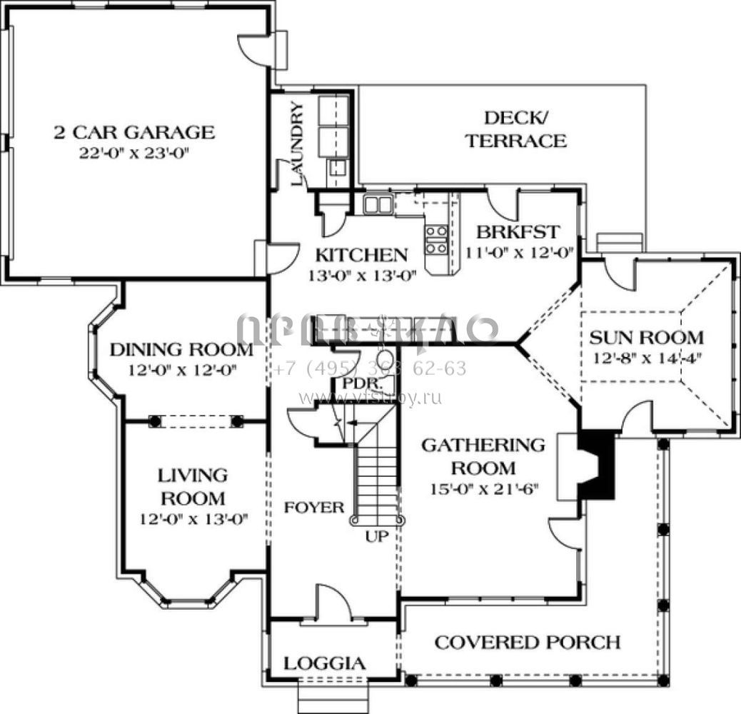 Проект двухэтажного дома с гаражом на две машины в стиле Ранчо S5-280 (3323-00230)