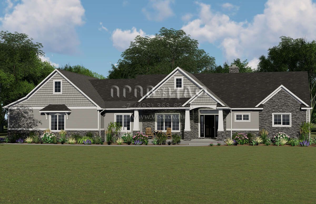 Проект одноэтажного дома с гаражом на две машины в американском стиле S5-280 (5032-00035)