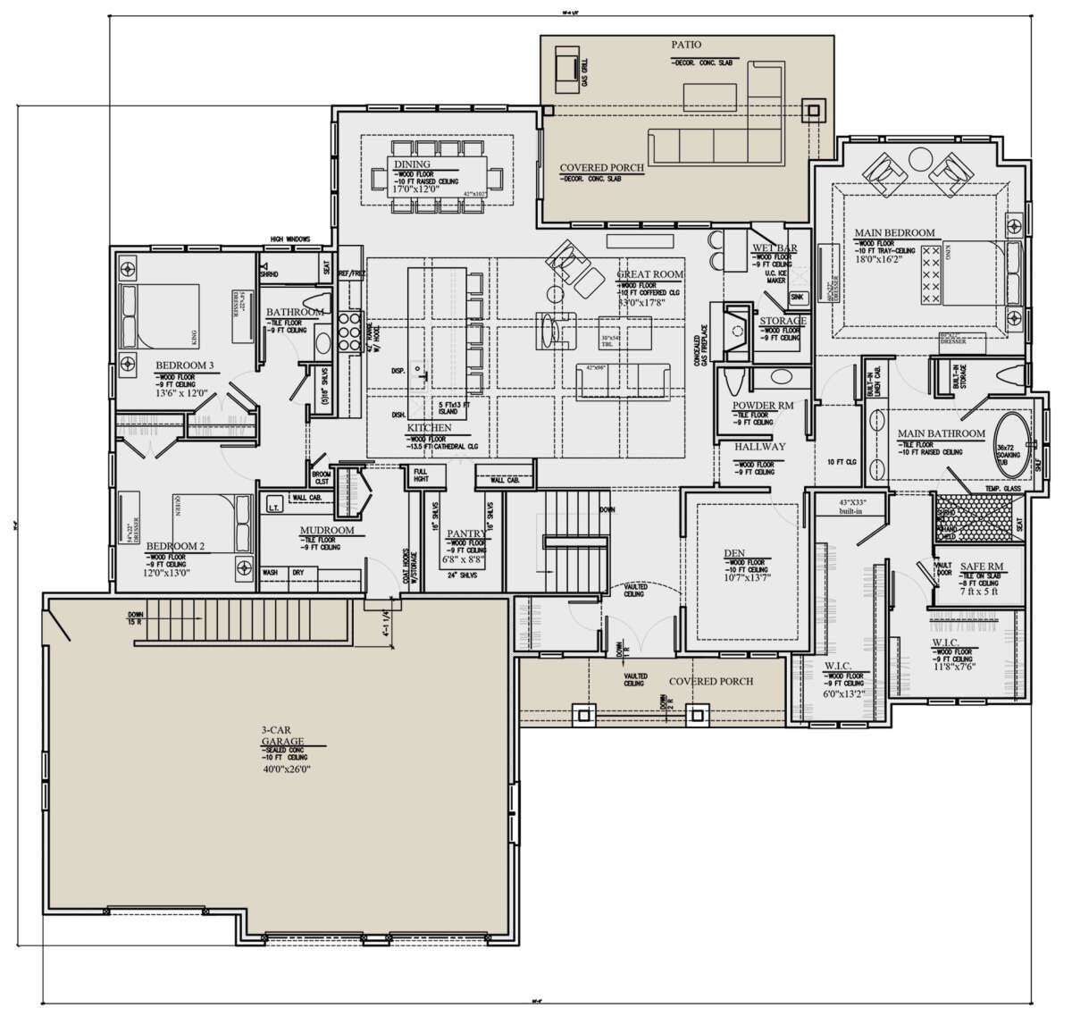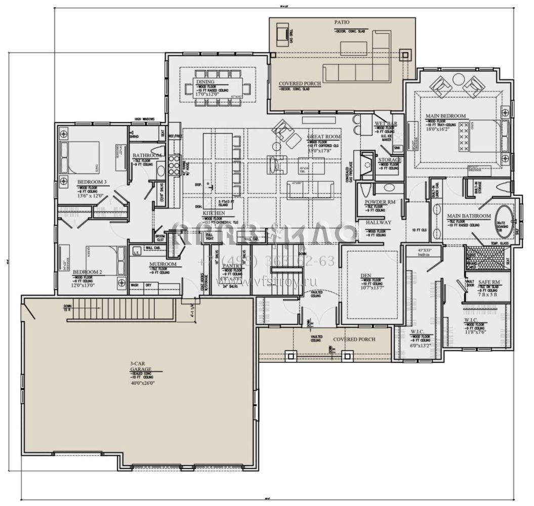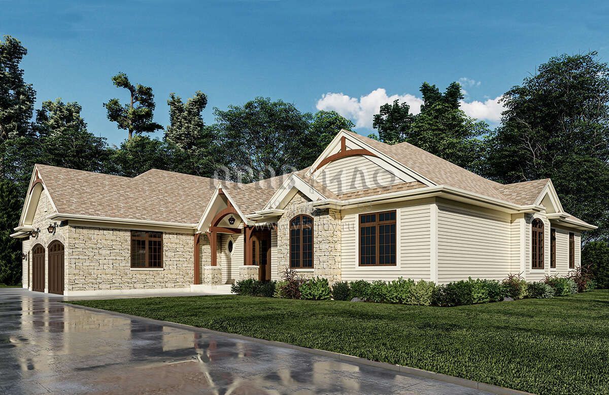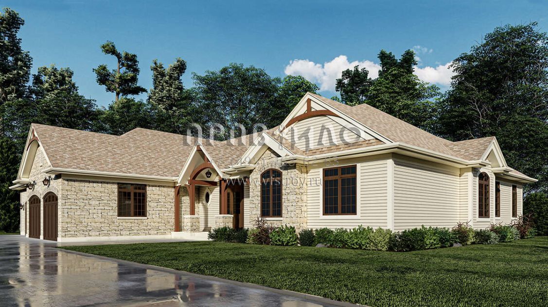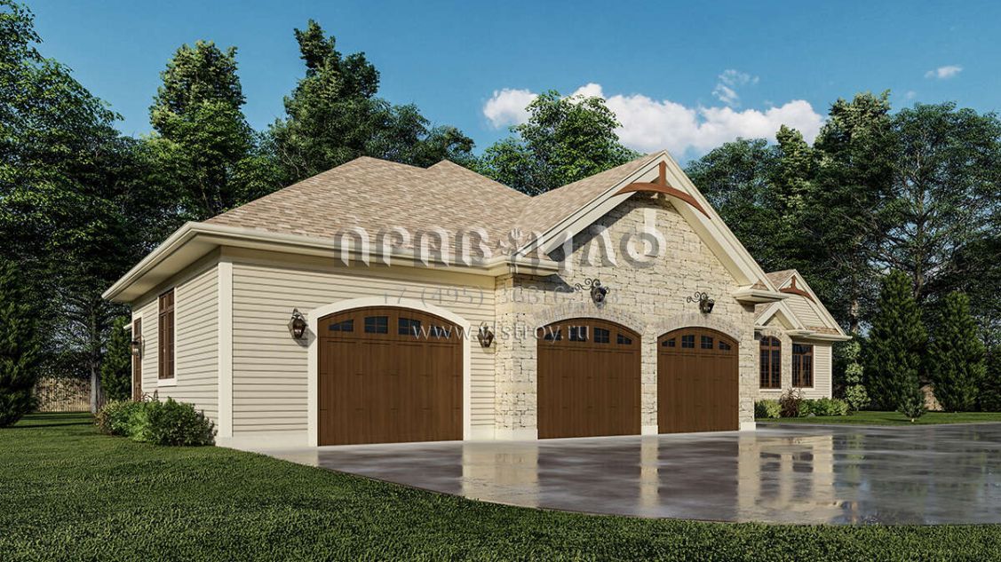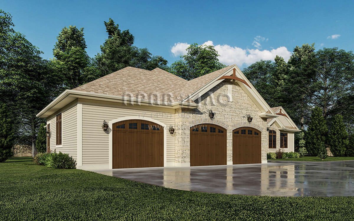Проект одноэтажного дома с гаражом на три и более машин в американском стиле S5-280 (8080-00003)