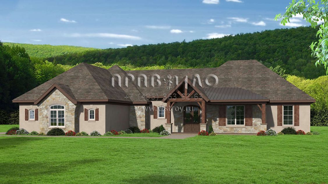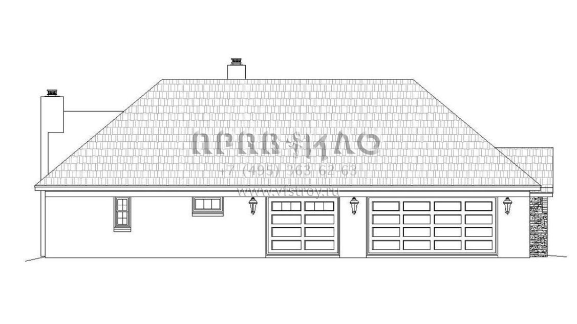Проект одноэтажного дома с гаражом на три и более машин в стиле Ранчо S5-280 (940-00150)