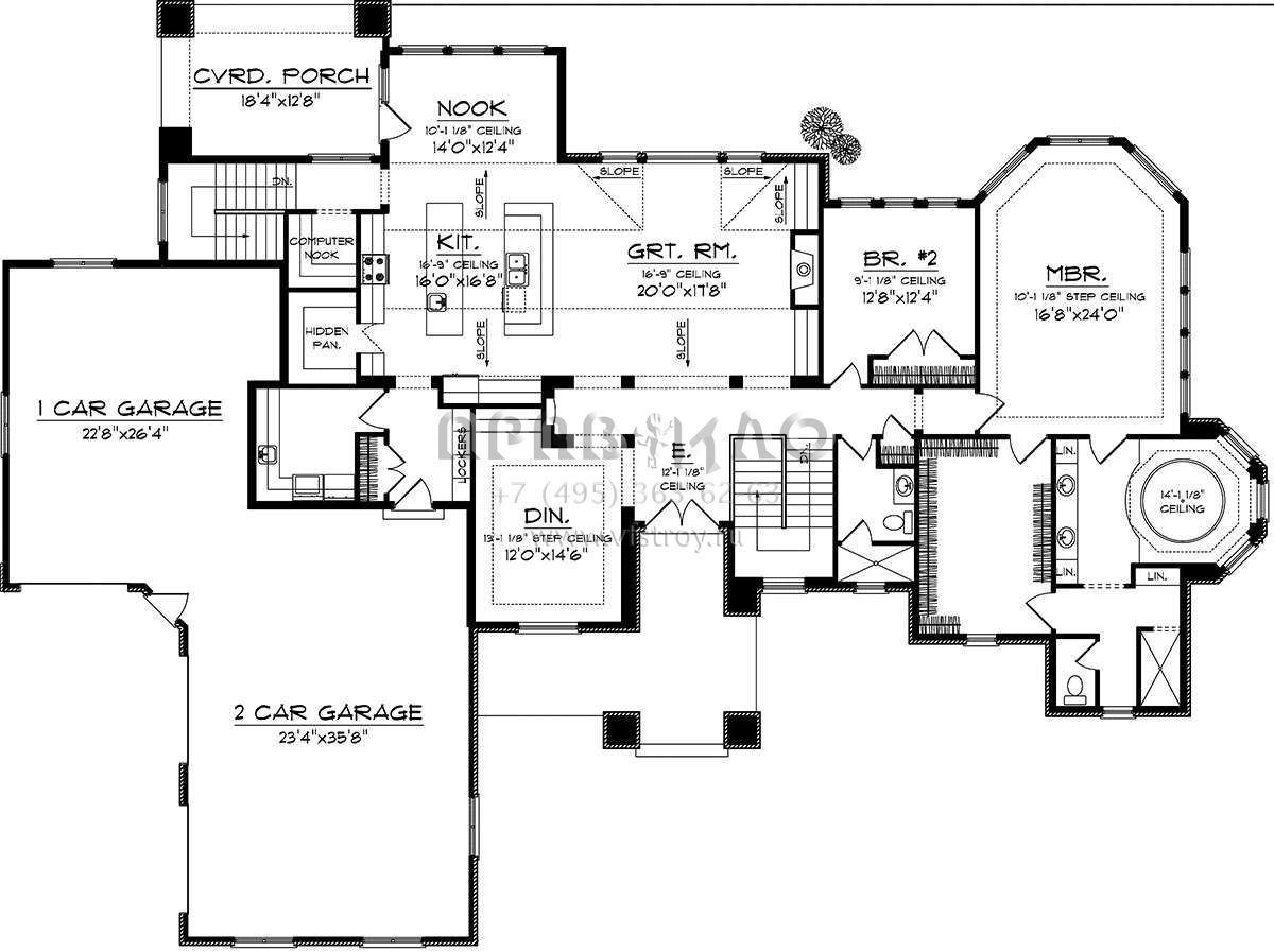 Проект одноэтажного дома с гаражом на три и более машин в стиле Ранчо S5-281 (1020-00245)