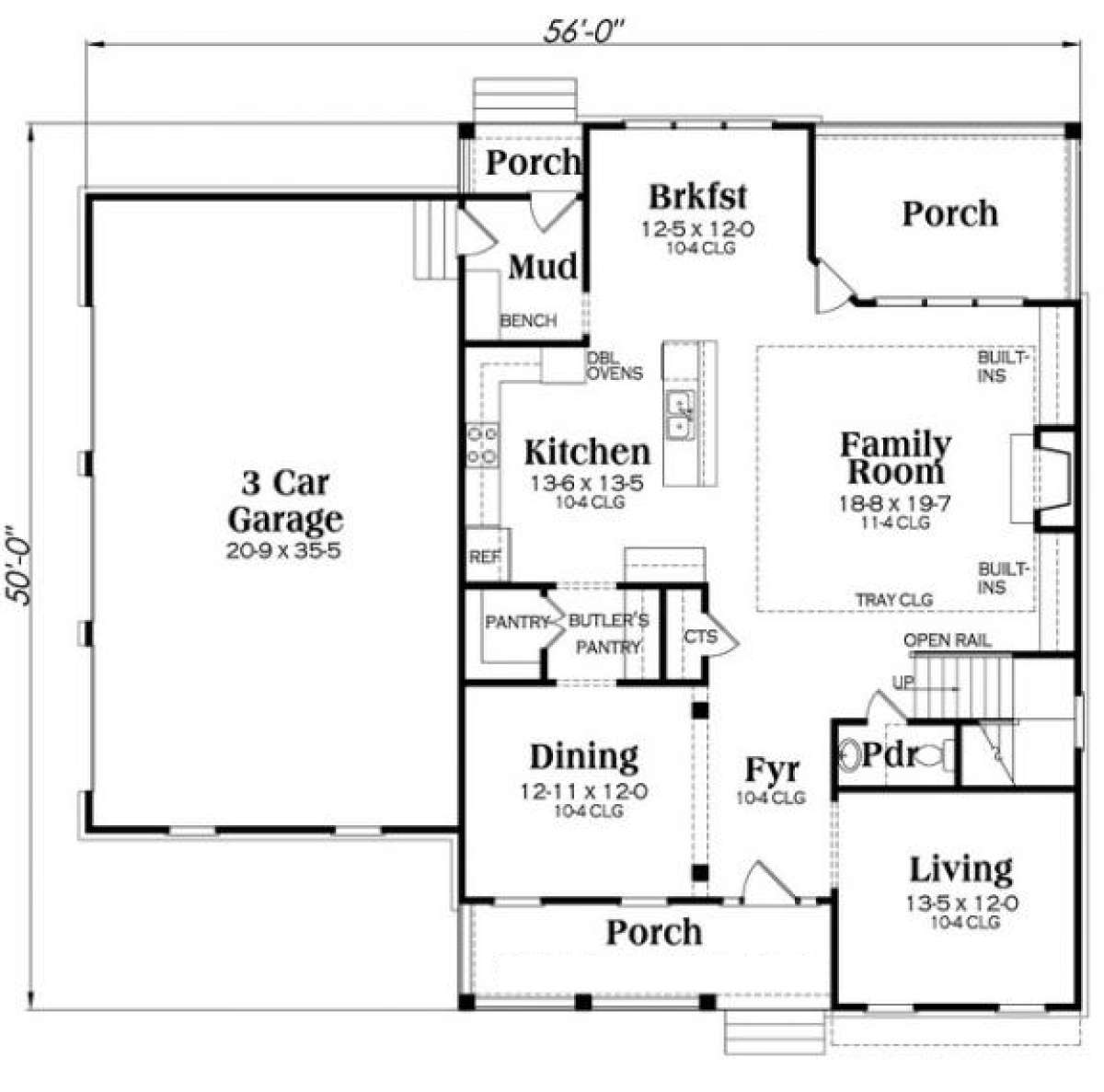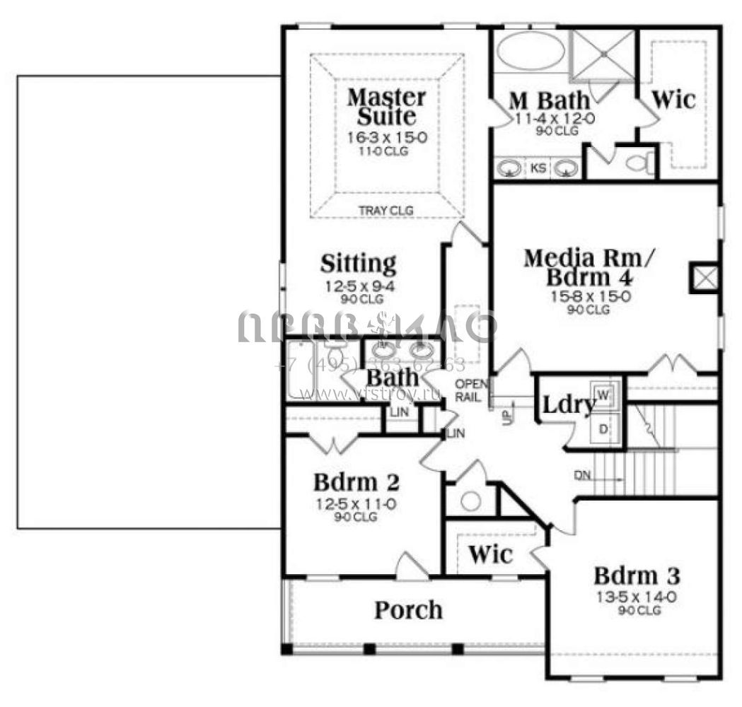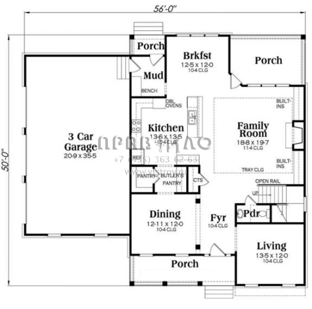 Проект двухэтажного дома с гаражом на три и более машин в американском стиле S5-282 (009-00259)