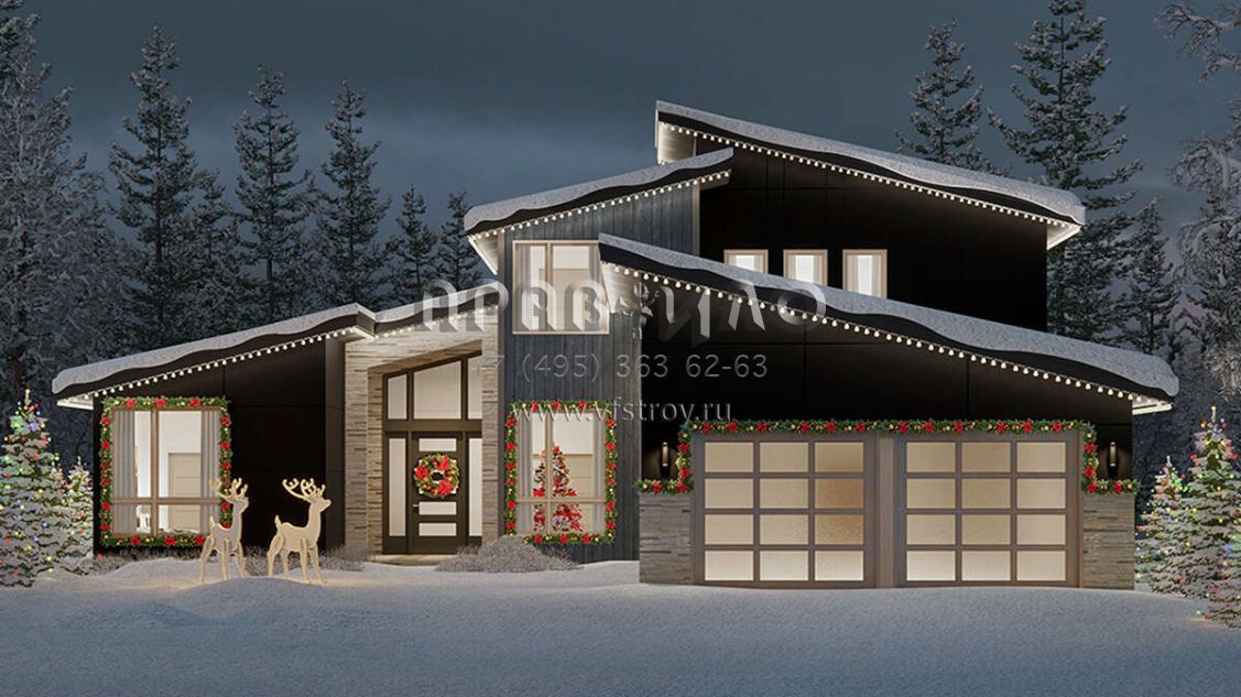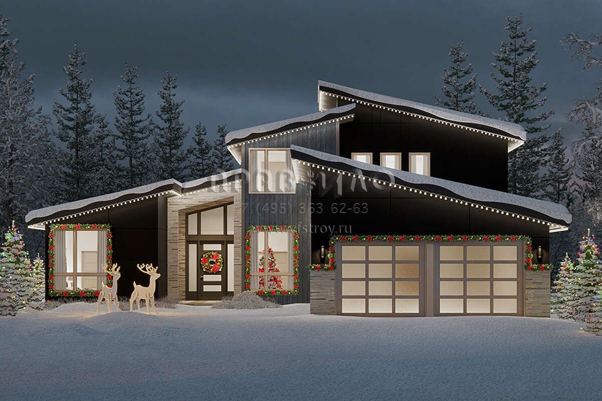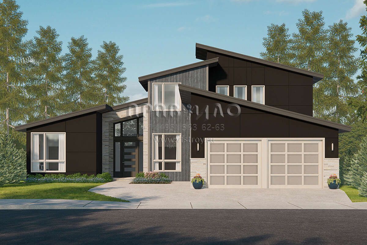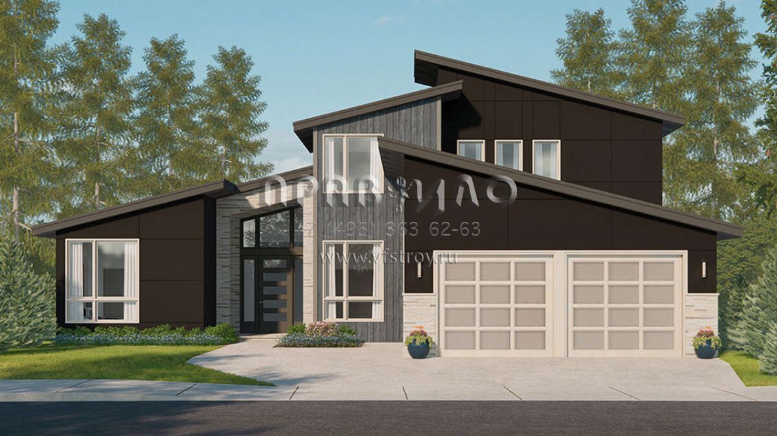 Проект двухэтажного дома с гаражом на две машины в современном стиле S5-282 (035-01046)
