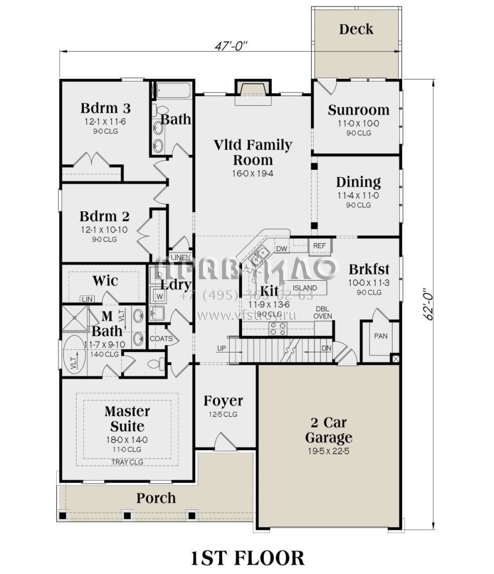 Поскольку этот проект разрабатывался иностранными архитекторами, для строительства дома требуется переработка проекта под действующие в России нормы. Данные визуализации проекта представлены для ознакомления с концепцией проекта. Проект разработан американским архитектурным бюро и представлен America's Best House Plans.