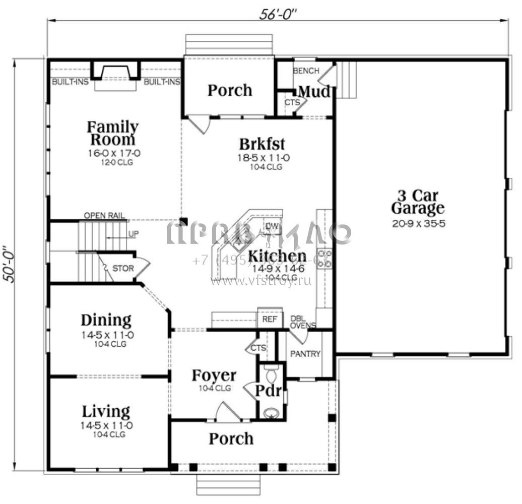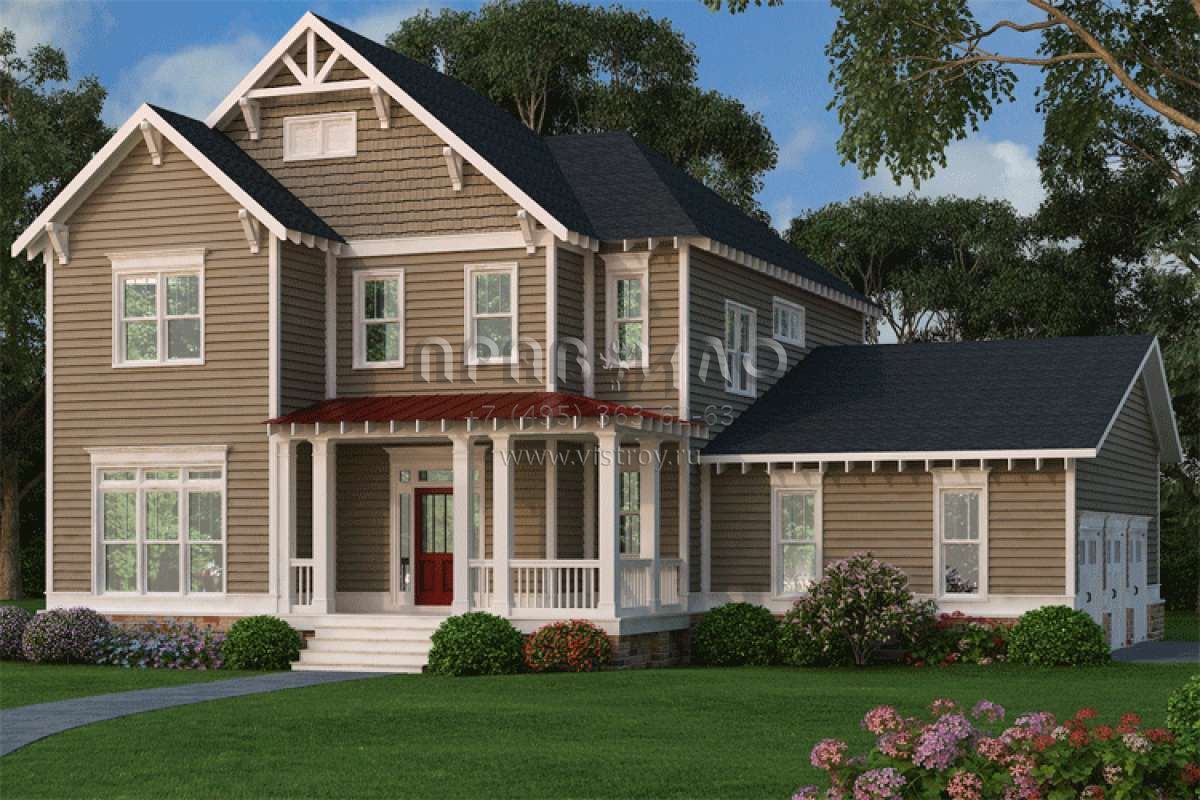 Проект двухэтажного дома с гаражом на две машины в американском стиле S5-283 (009-00211)