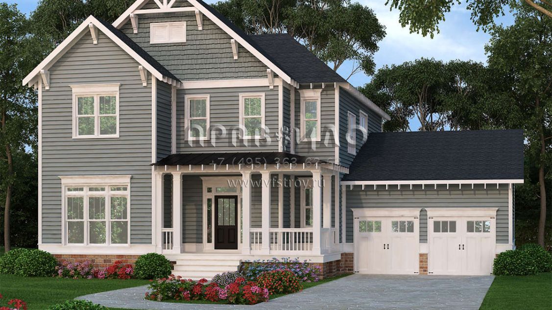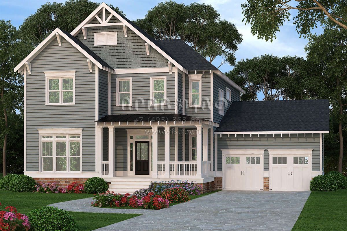 Проект двухэтажного дома с гаражом на две машины в стиле Ранчо S5-283 (009-00212)