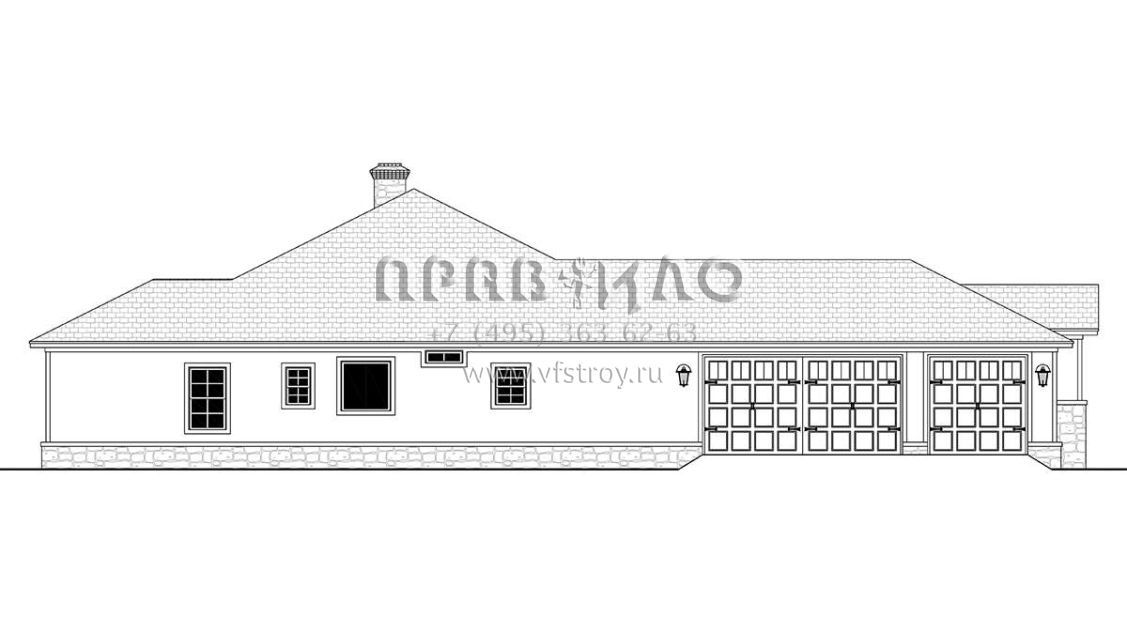 Проект одноэтажного дома с гаражом на три и более машин в стиле Ранчо S5-283 (041-00189)