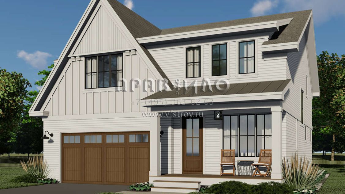 Проект двухэтажного дома с гаражом на две машины в современном стиле S5-283 (098-00380)