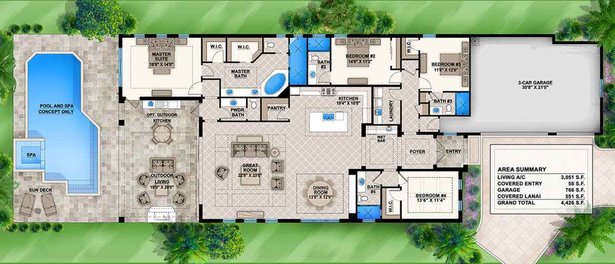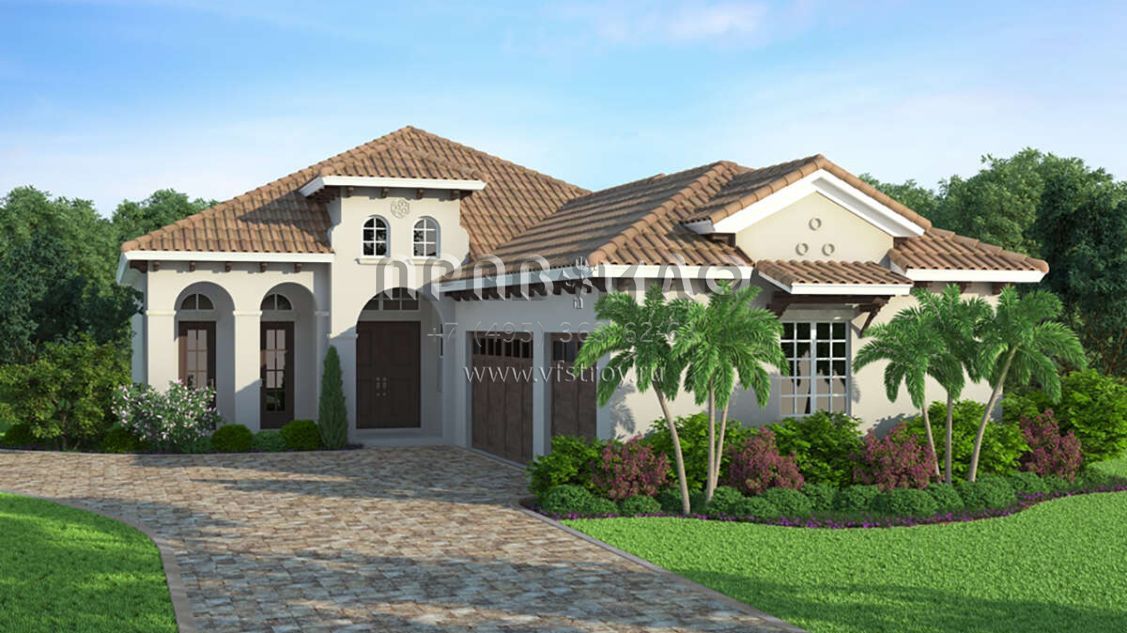 Проект одноэтажного дома с гаражом на три и более машин в прибрежном стиле S5-283 (207-00094)
