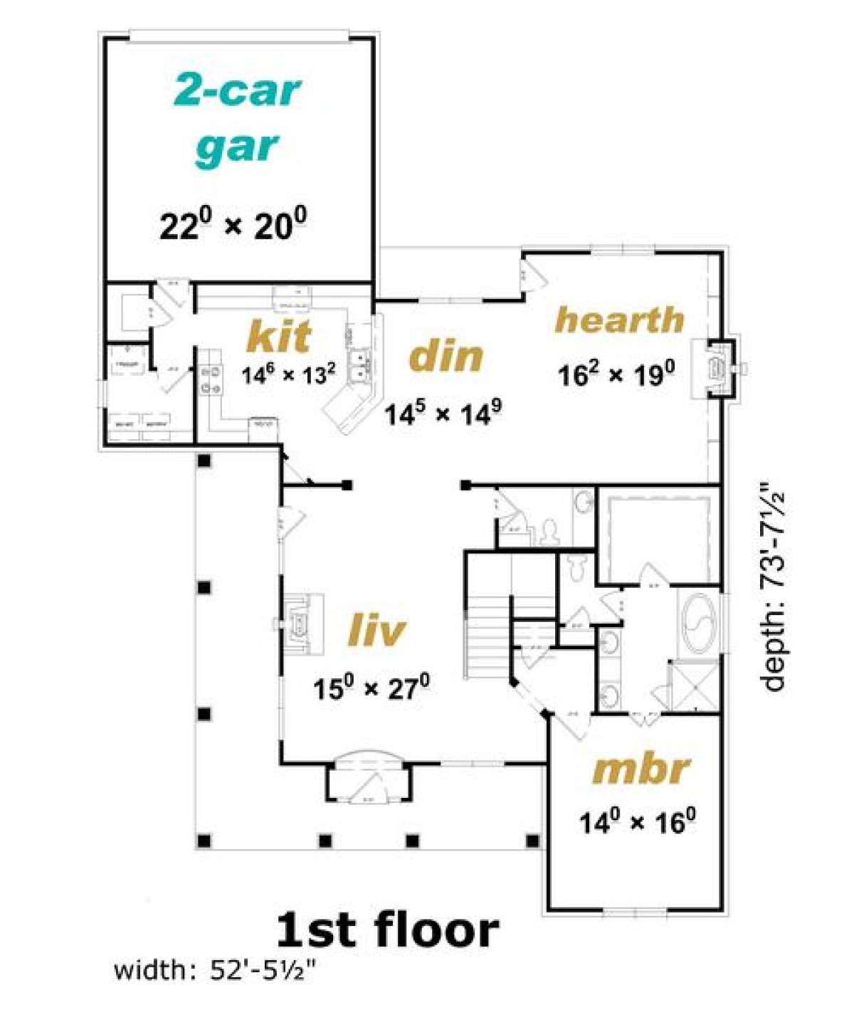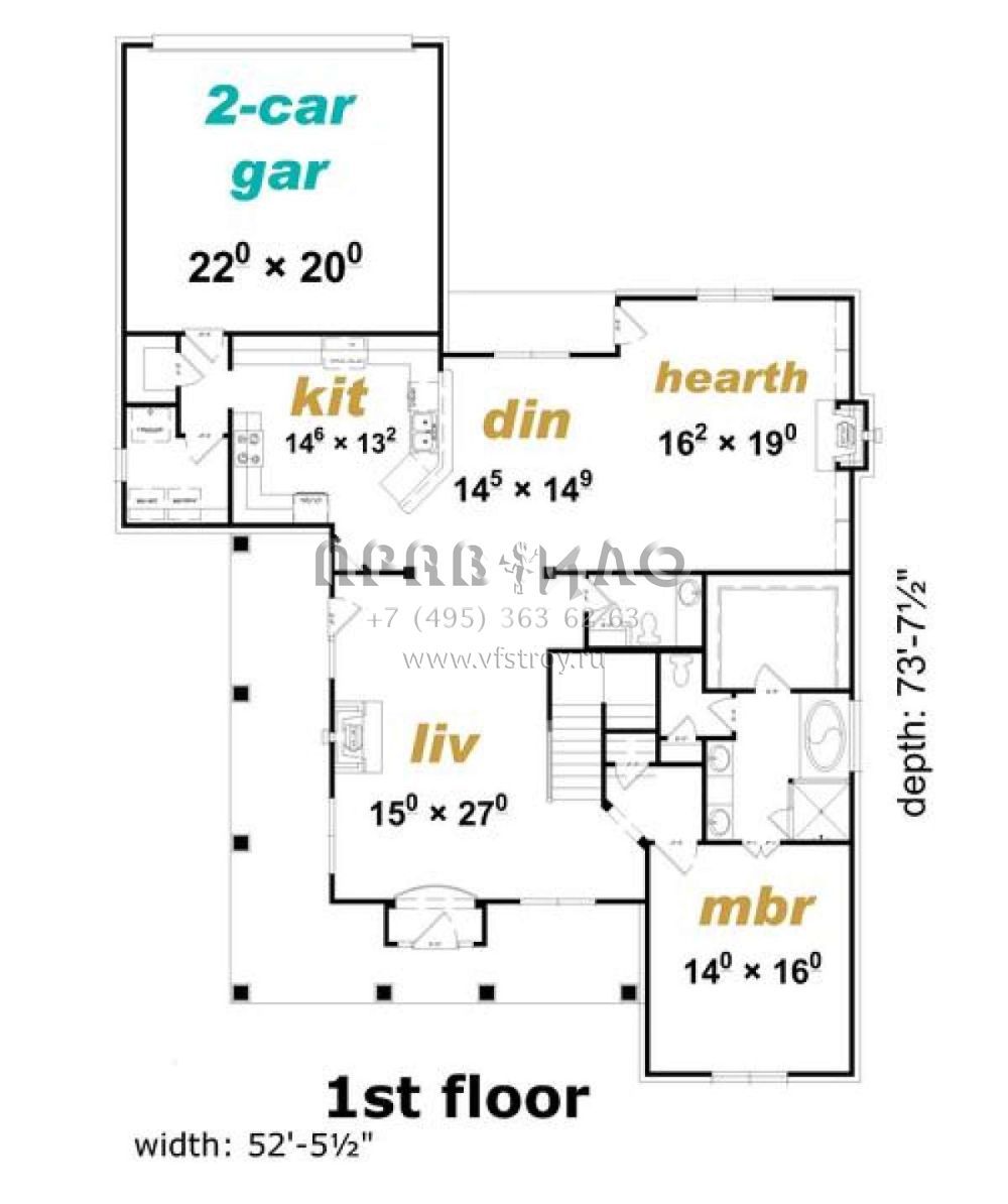 Проект двухэтажного дома с гаражом на две машины в стиле Ранчо S5-283 (3367-00052)