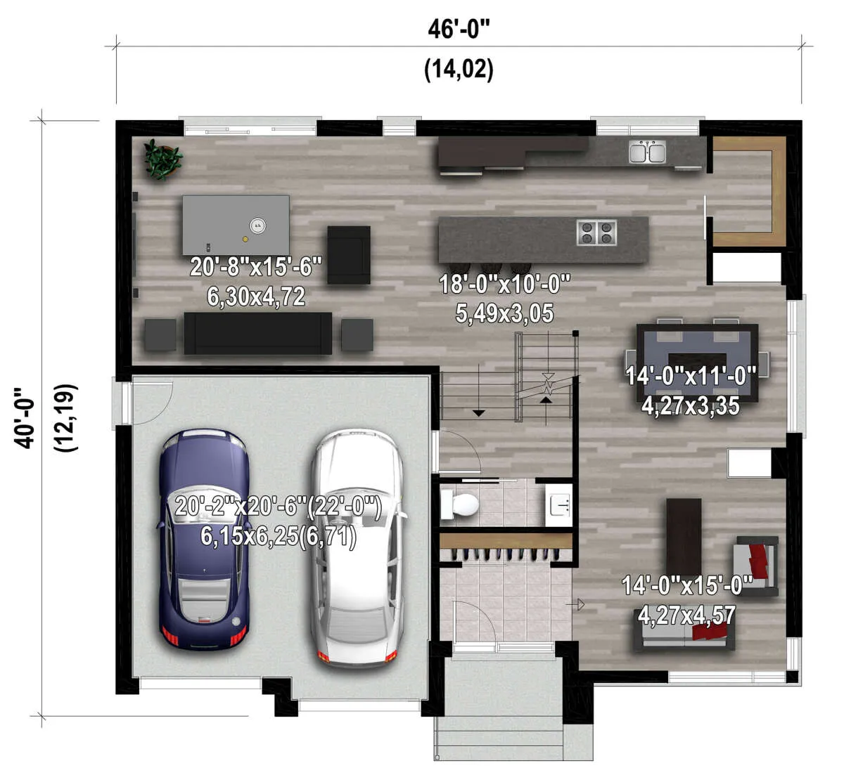 Проект двухэтажного дома с гаражом на две машины в современном стиле S5-283 (6146-00510)