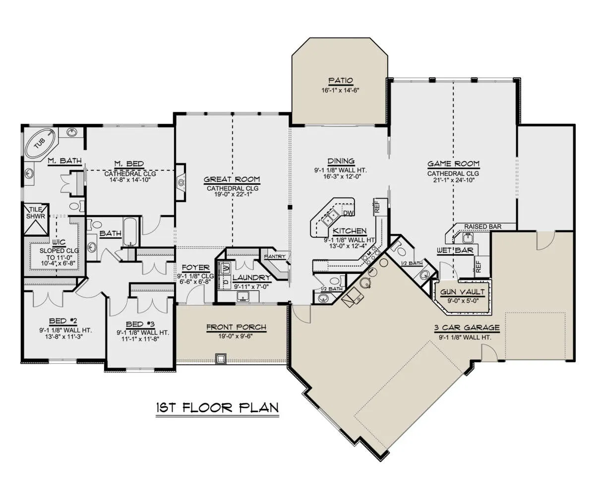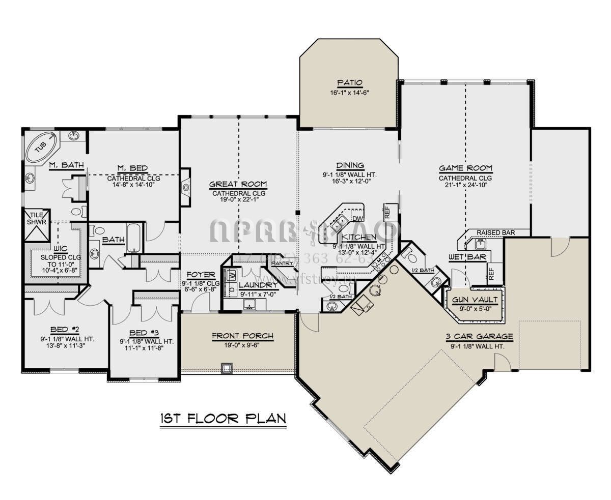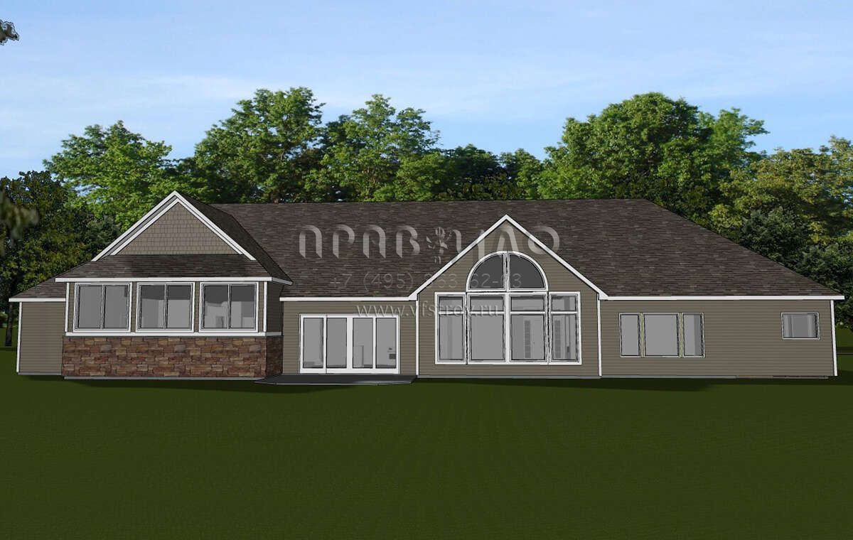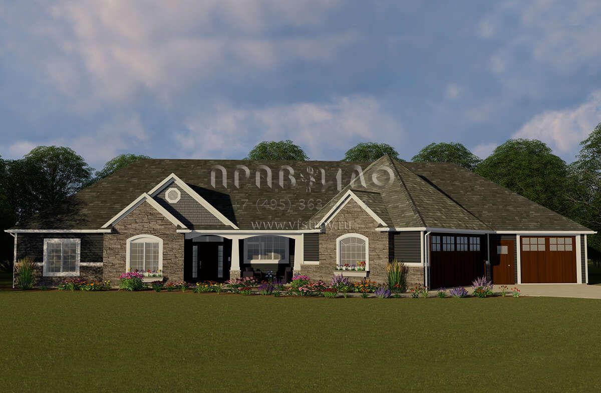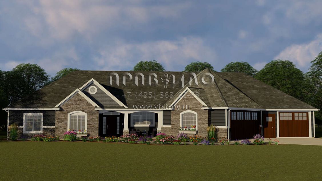 Проект одноэтажного дома с гаражом на три и более машин в американском стиле S5-284 (5032-00032)