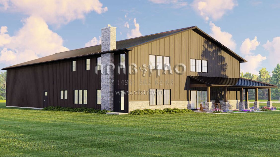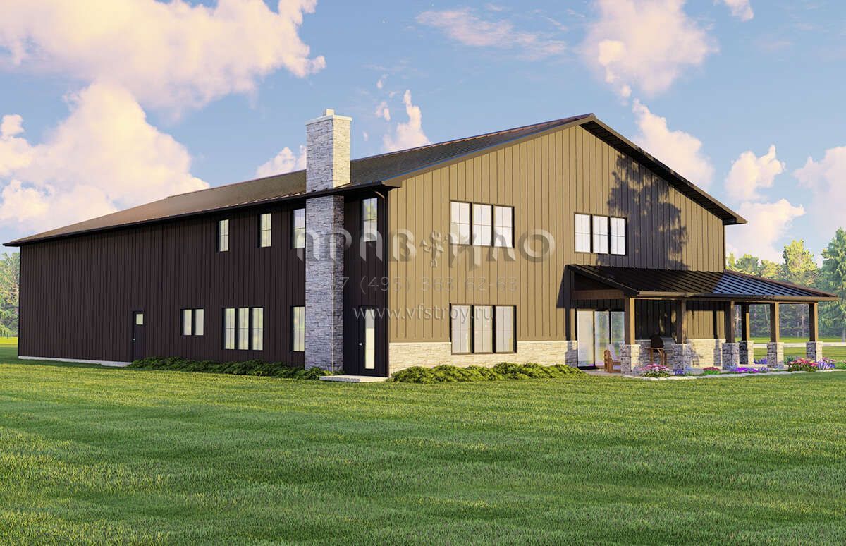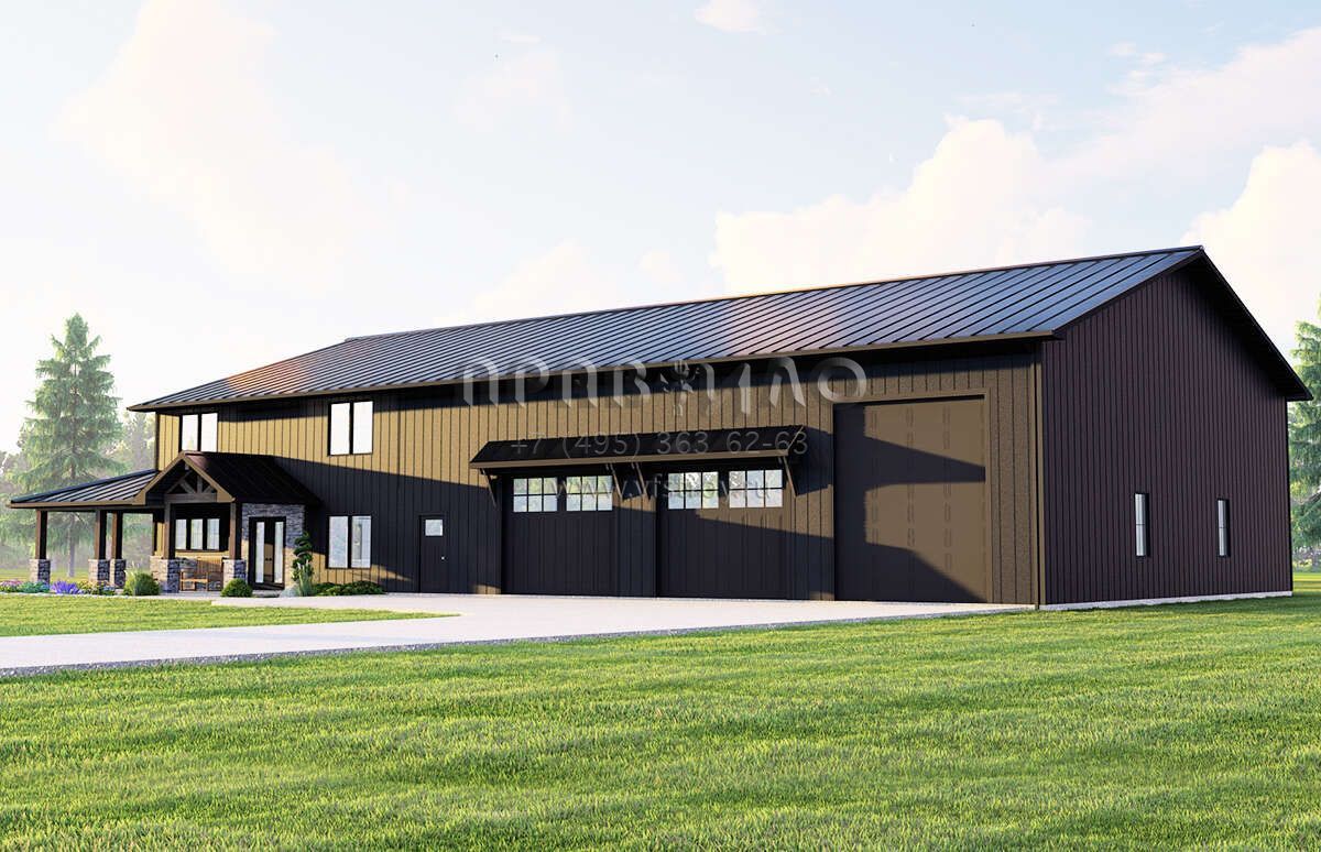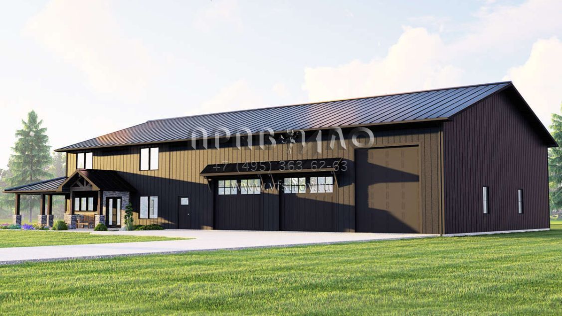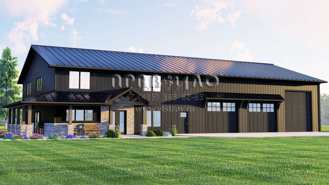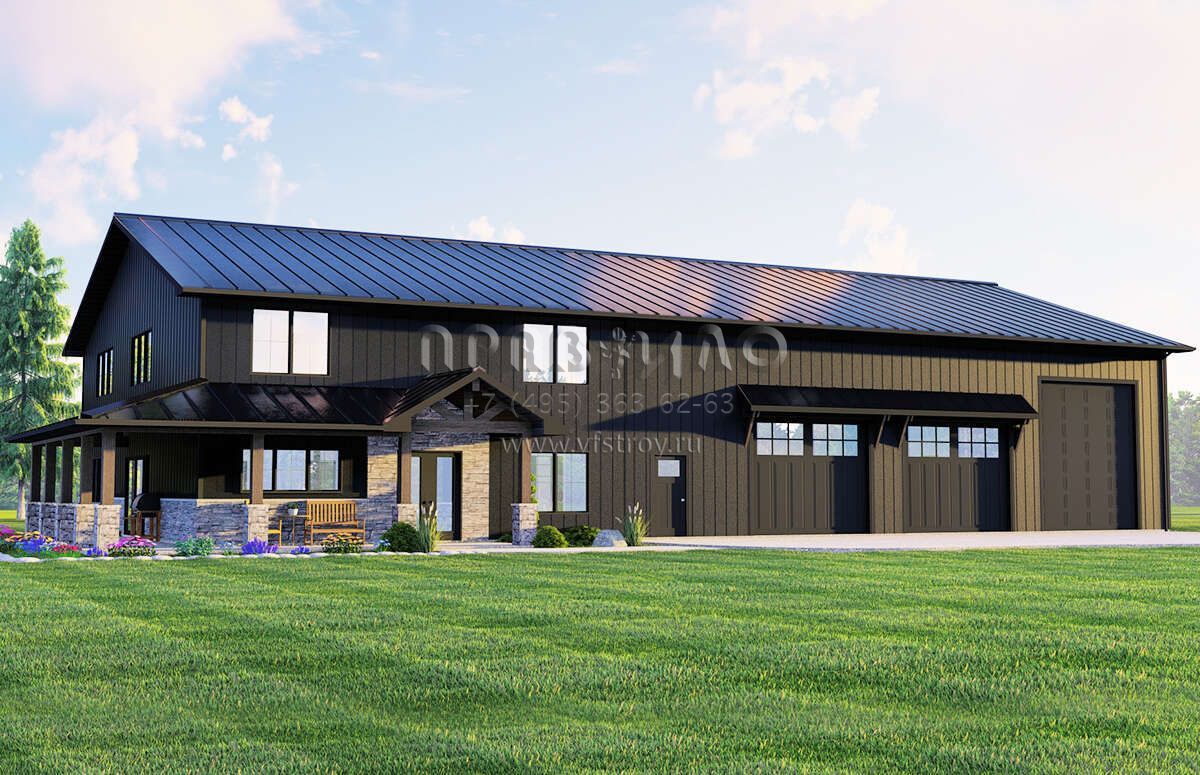 Проект двухэтажного дома с гаражом на три и более машин в стиле БарнХаус S5-284 (5032-00160)