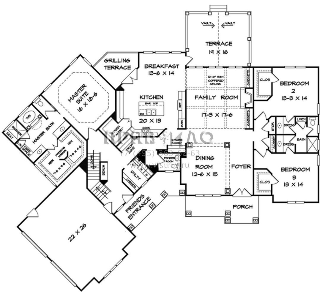 Проект одноэтажного дома с гаражом на две машины в американском стиле S5-284 (6082-00005)