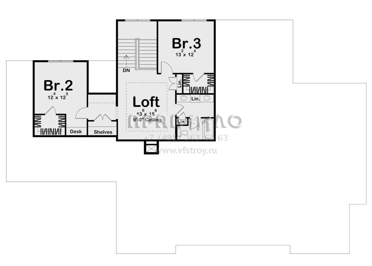 S5-284 (963-00690) Это иностранный проект, для которого требуется адаптация под нормы, действующие в Российской Федерации. Вы видите проект дома в английском стиле. В этом доме сочетаются черты сельской постройки и аскетичность лофта. Внутри жильцы смогут проводить время с максимальным комфортом. Обратим внимание, что сейчас на планировках все размеры представлены в футах. Для перевода в метры вам необходимо значение в футах умножить на 0,3048.