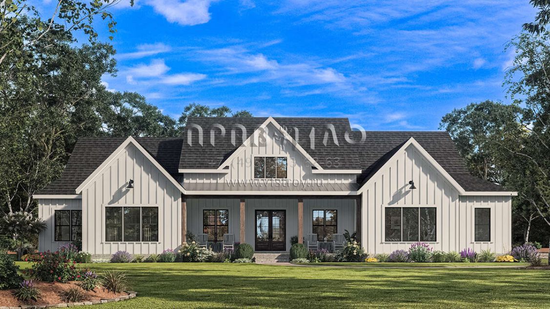 Проект одноэтажного дома с гаражом на три и более машин в современном стиле S5-285 (009-00337)
