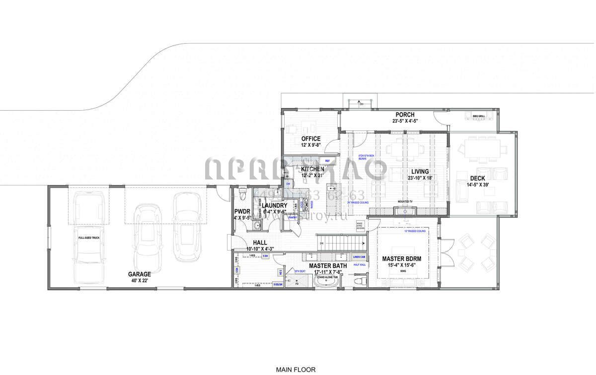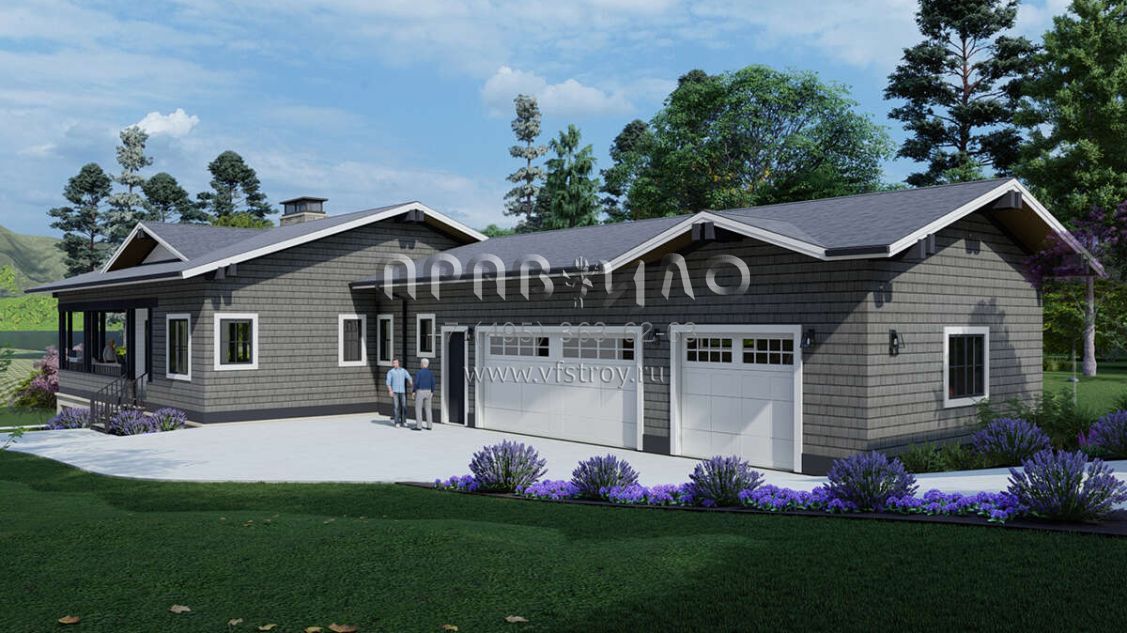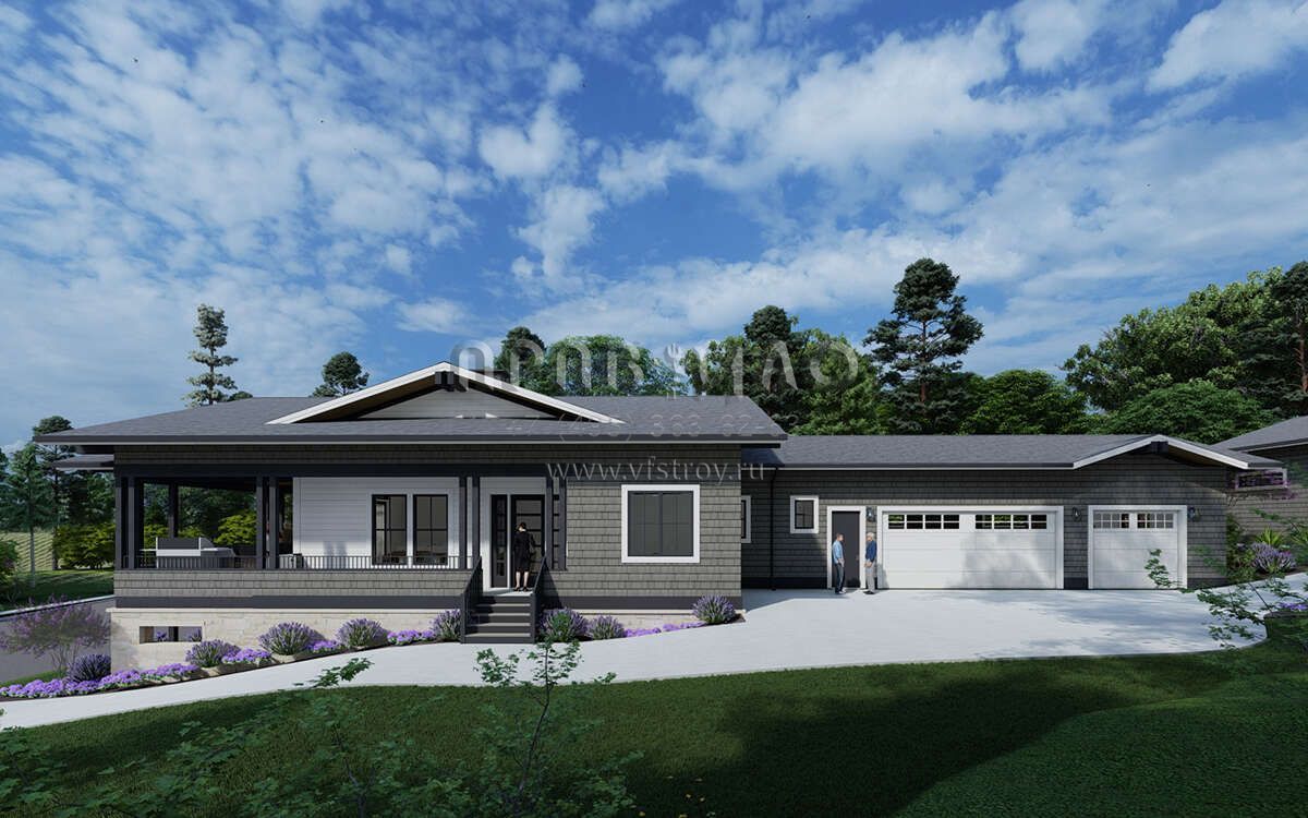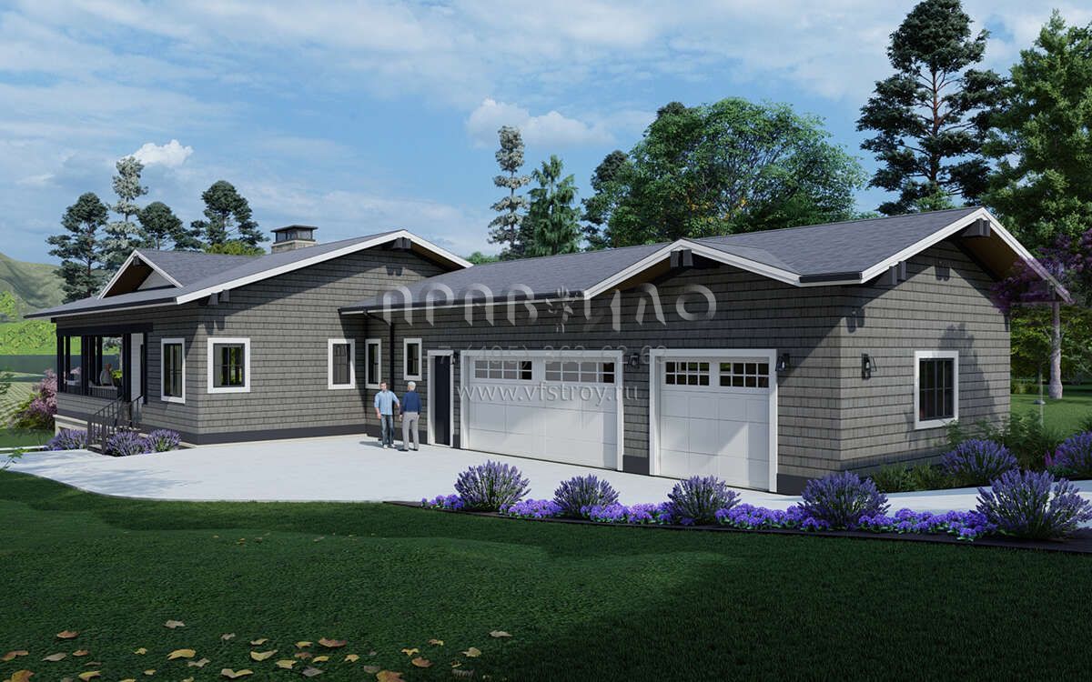 Проект одноэтажного дома с гаражом на три и более машин в современном стиле S5-285 (425-00052)