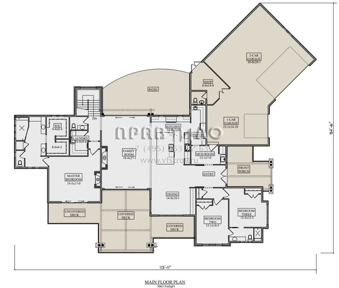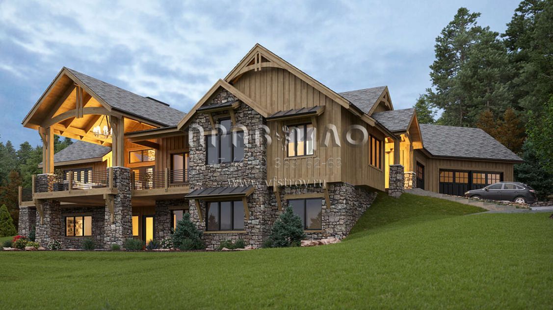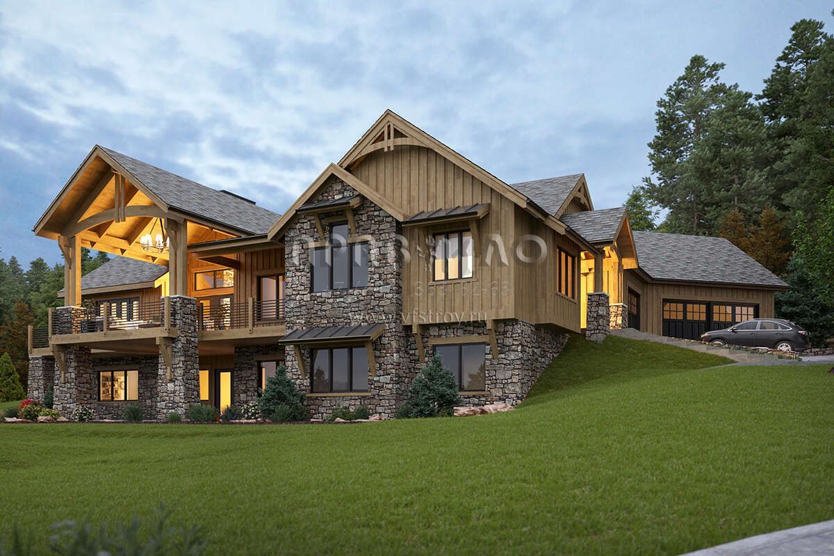 Проект одноэтажного дома с гаражом на три и более машин в стиле Шале S5-285 (5631-00135)