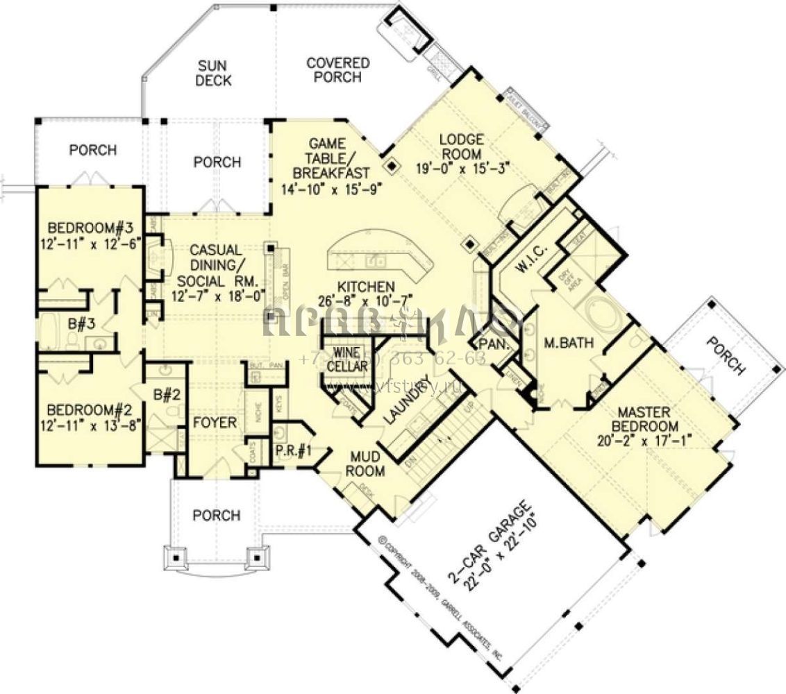 Проект одноэтажного дома с гаражом на две машины в американском стиле S5-285 (699-00047)