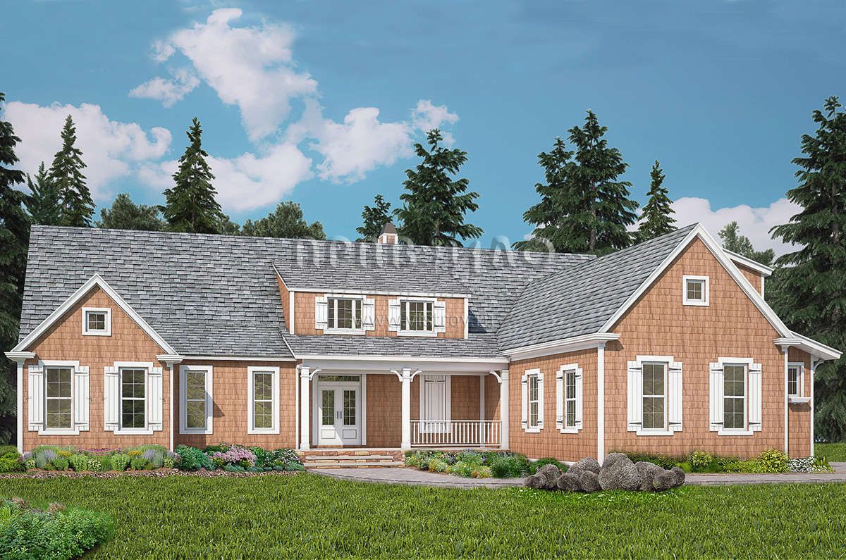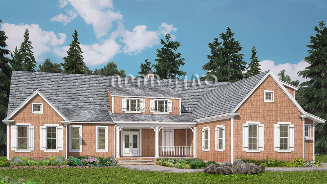 Проект двухэтажного дома с гаражом на две машины в стиле Ранчо S5-285 (699-00247)