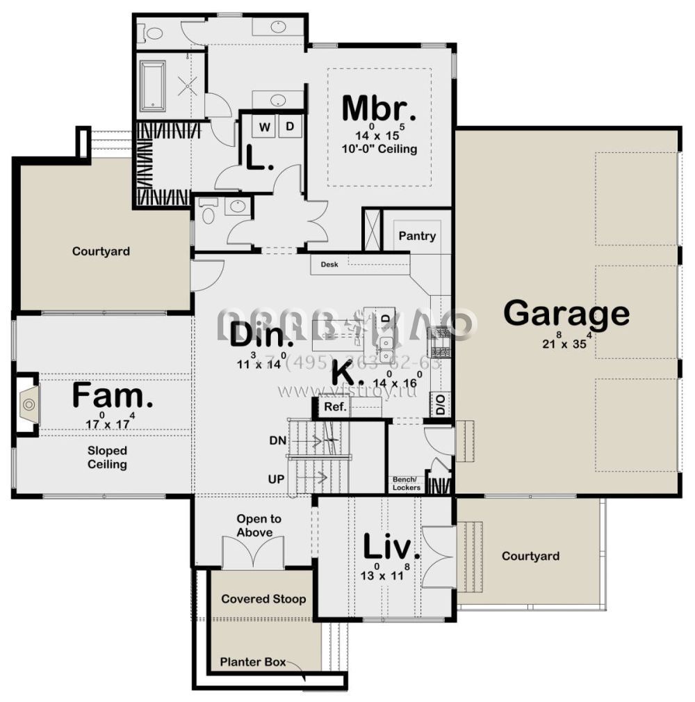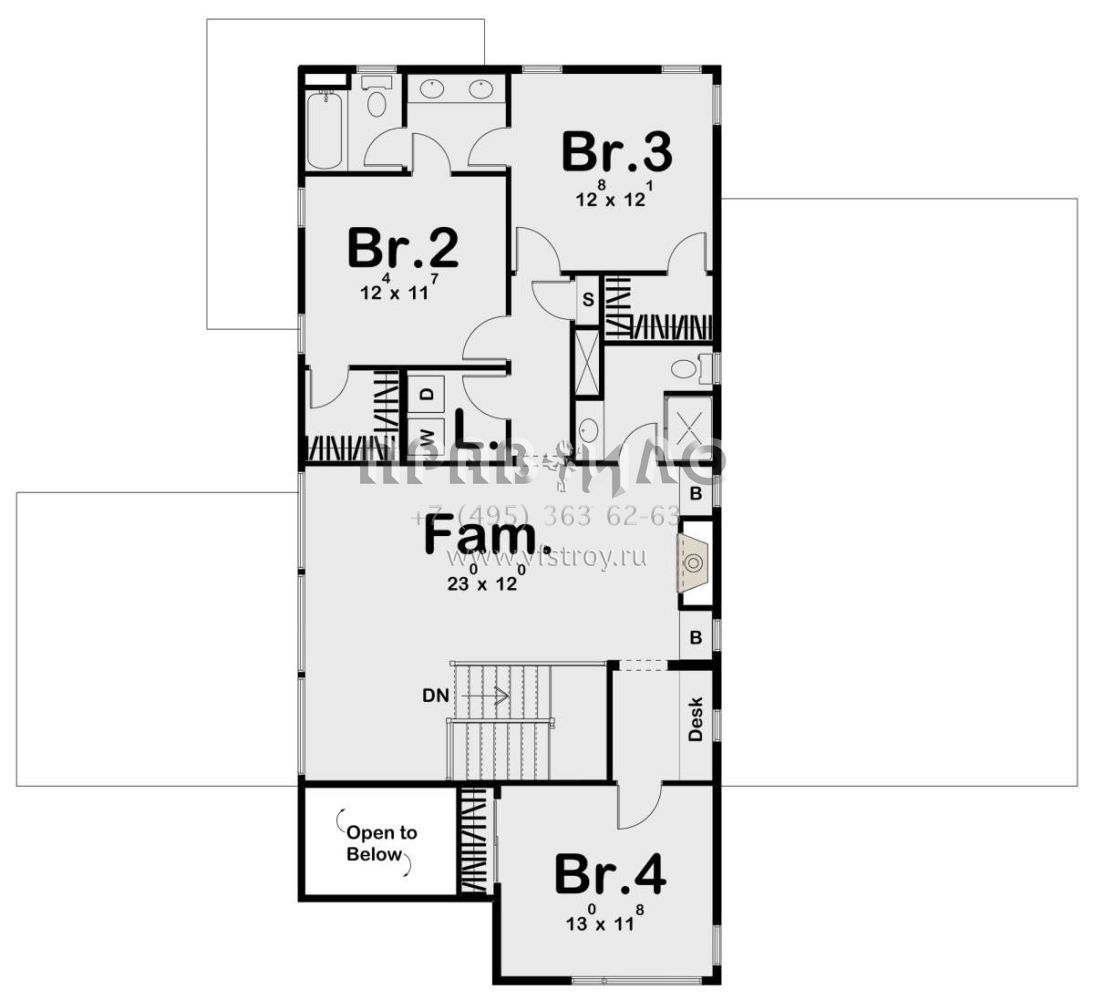 Поскольку этот проект разрабатывался иностранными архитекторами, для строительства дома требуется переработка проекта под действующие в России нормы. Данные визуализации проекта представлены для ознакомления с концепцией проекта. Проект разработан американским архитектурным бюро и представлен America's Best House Plans.