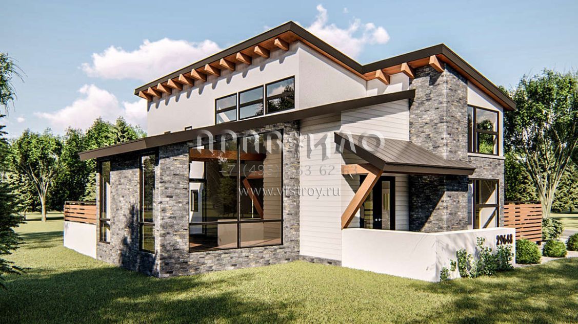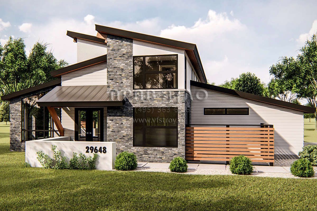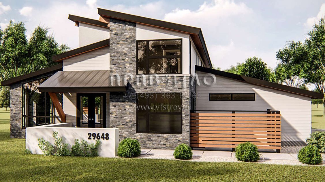S5-285 (963-00333) Это иностранный проект, для которого требуется адаптация под нормы, действующие в Российской Федерации. Вы видите проект дома в современном стиле. В этом доме сочетаются черты сельской постройки и аскетичность лофта. Внутри жильцы смогут проводить время с максимальным комфортом. Обратим внимание, что сейчас на планировках все размеры представлены в футах. Для перевода в метры вам необходимо значение в футах умножить на 0,3048.
