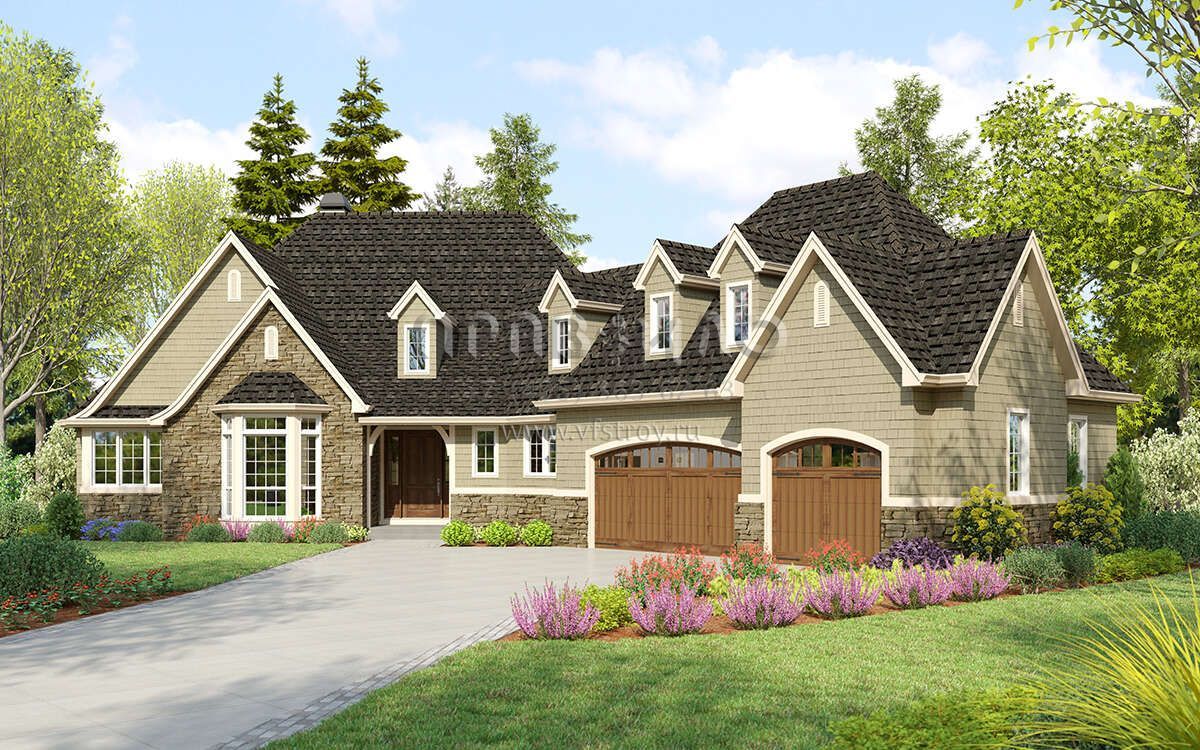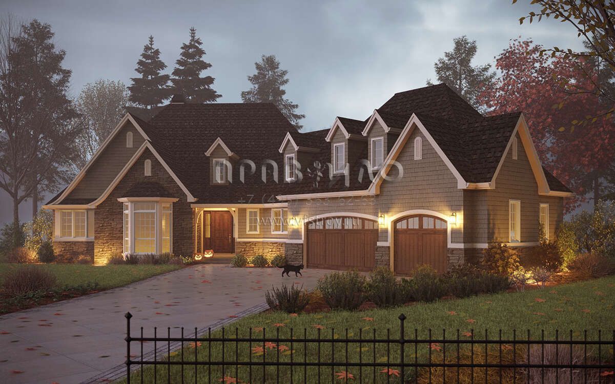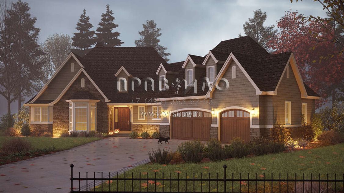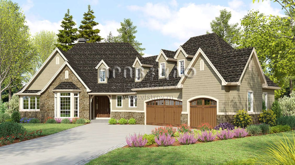 Проект одноэтажного дома с гаражом на три и более машин в американском стиле S5-286 (2559-00998)