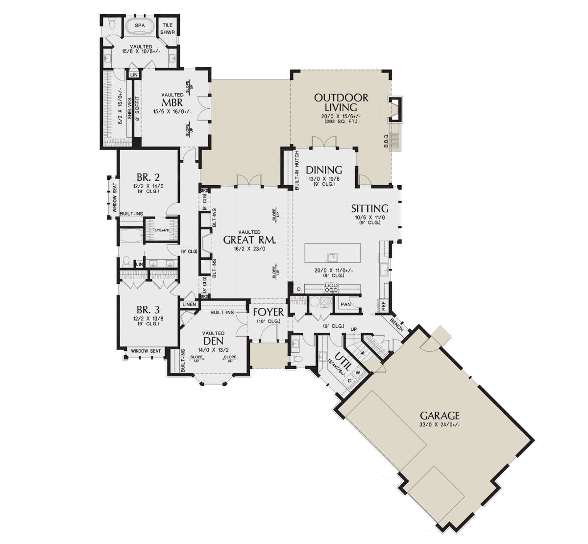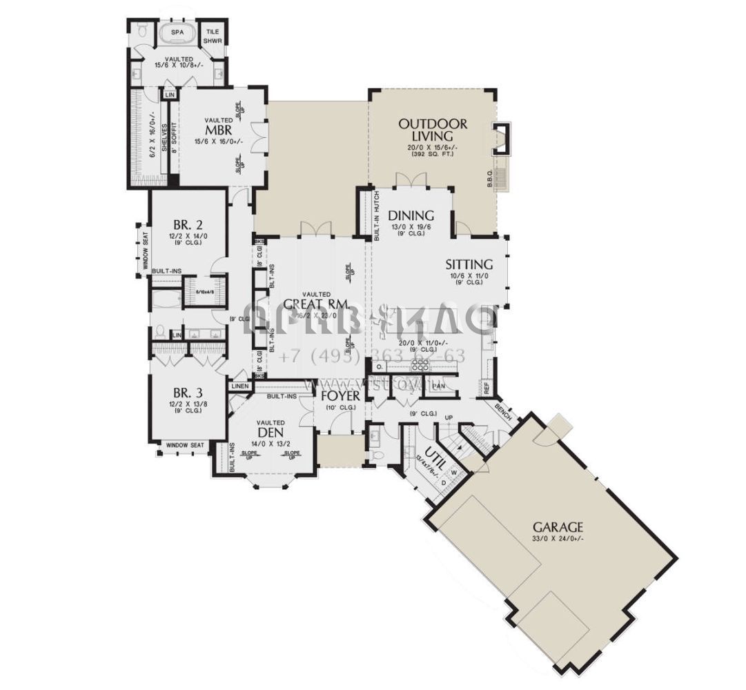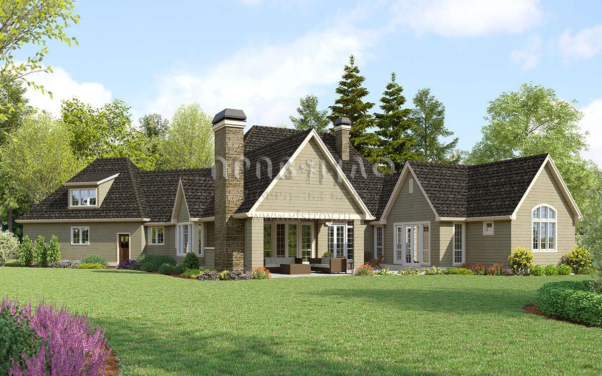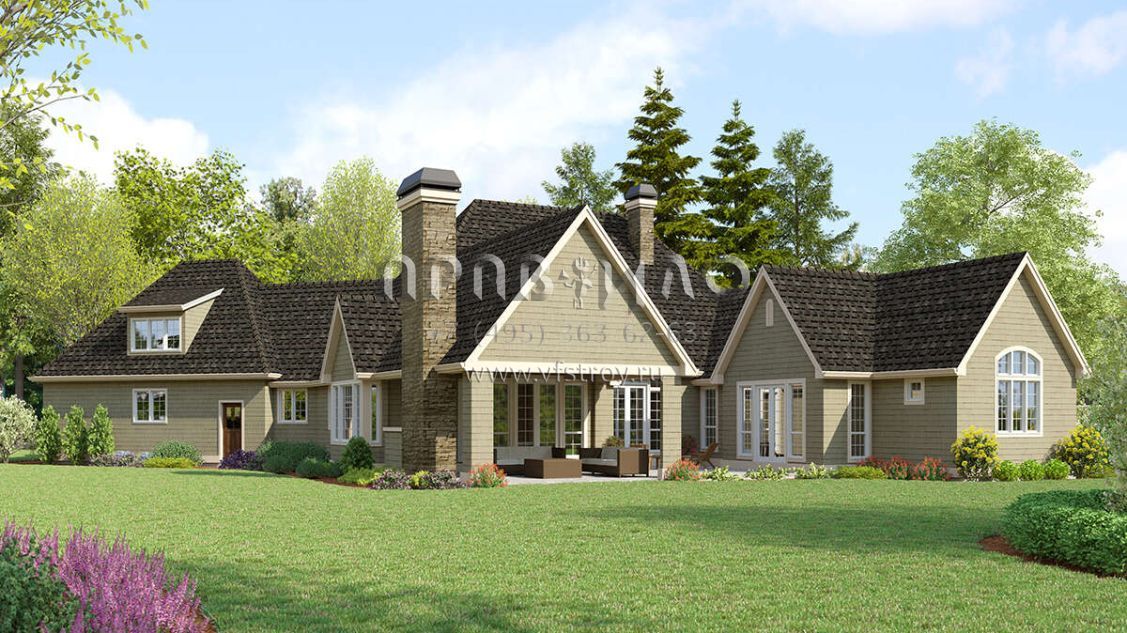 Проект одноэтажного дома с гаражом на три и более машин в американском стиле S5-286 (2559-00998)