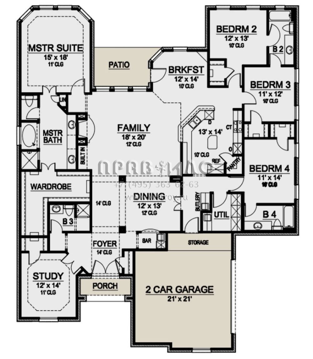 Проект одноэтажного дома с гаражом на три и более машин в английском стиле S5-286 (5445-00394)
