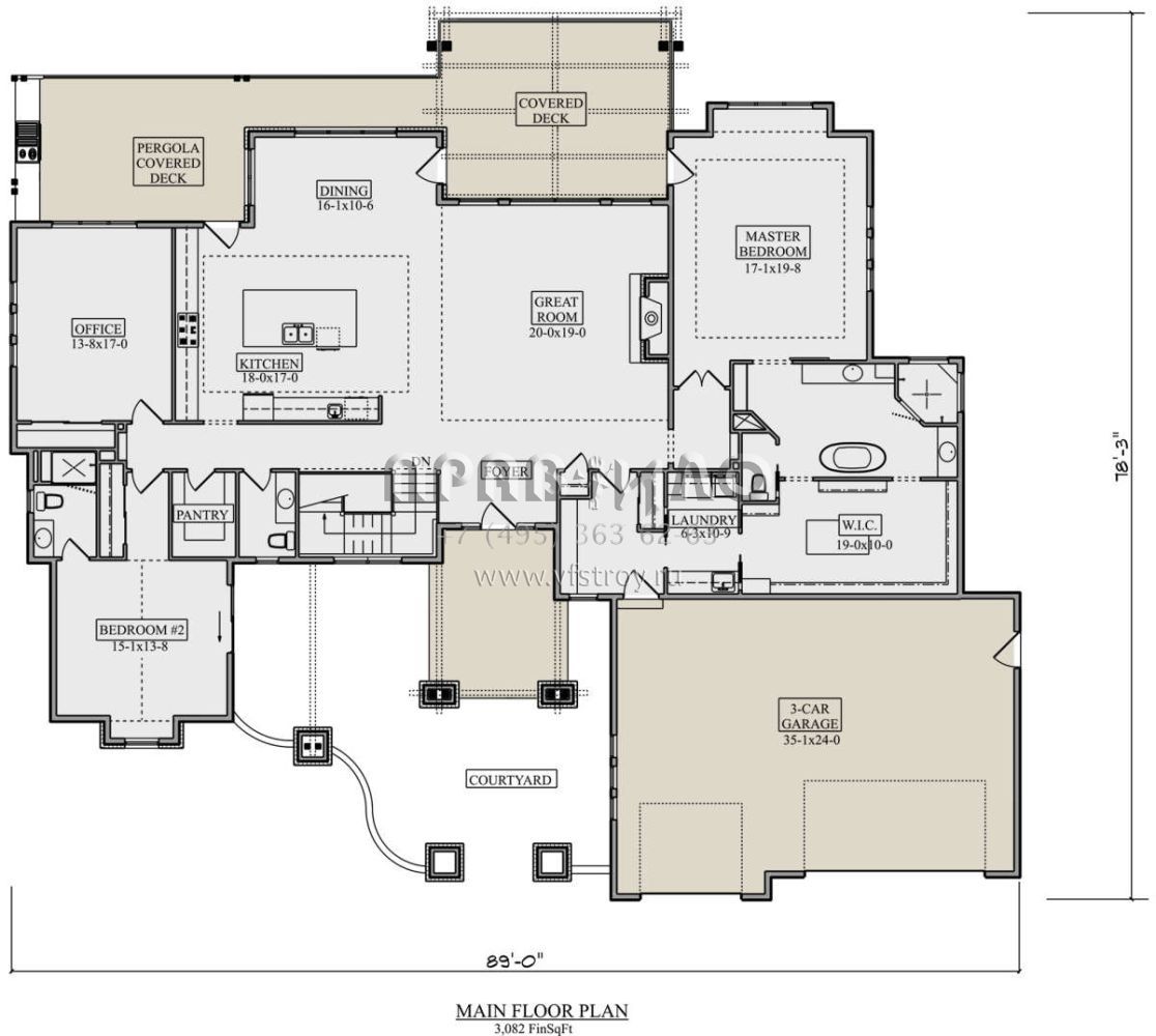 Поскольку этот проект разрабатывался иностранными архитекторами, для строительства дома требуется переработка проекта под действующие в России нормы. Данные визуализации проекта представлены для ознакомления с концепцией проекта. Проект разработан американским архитектурным бюро и представлен America's Best House Plans.