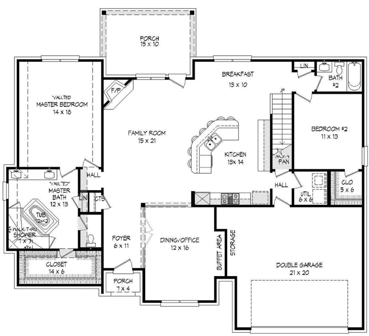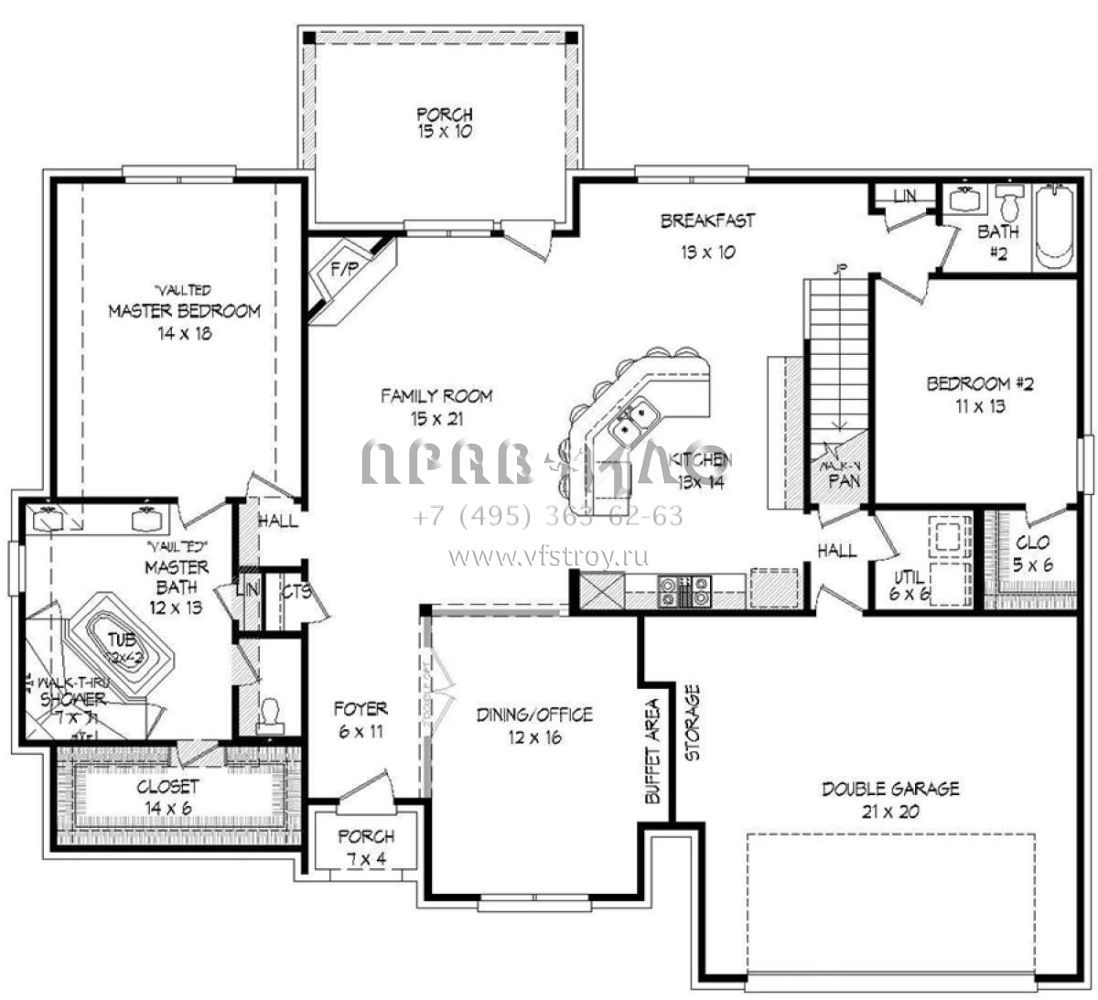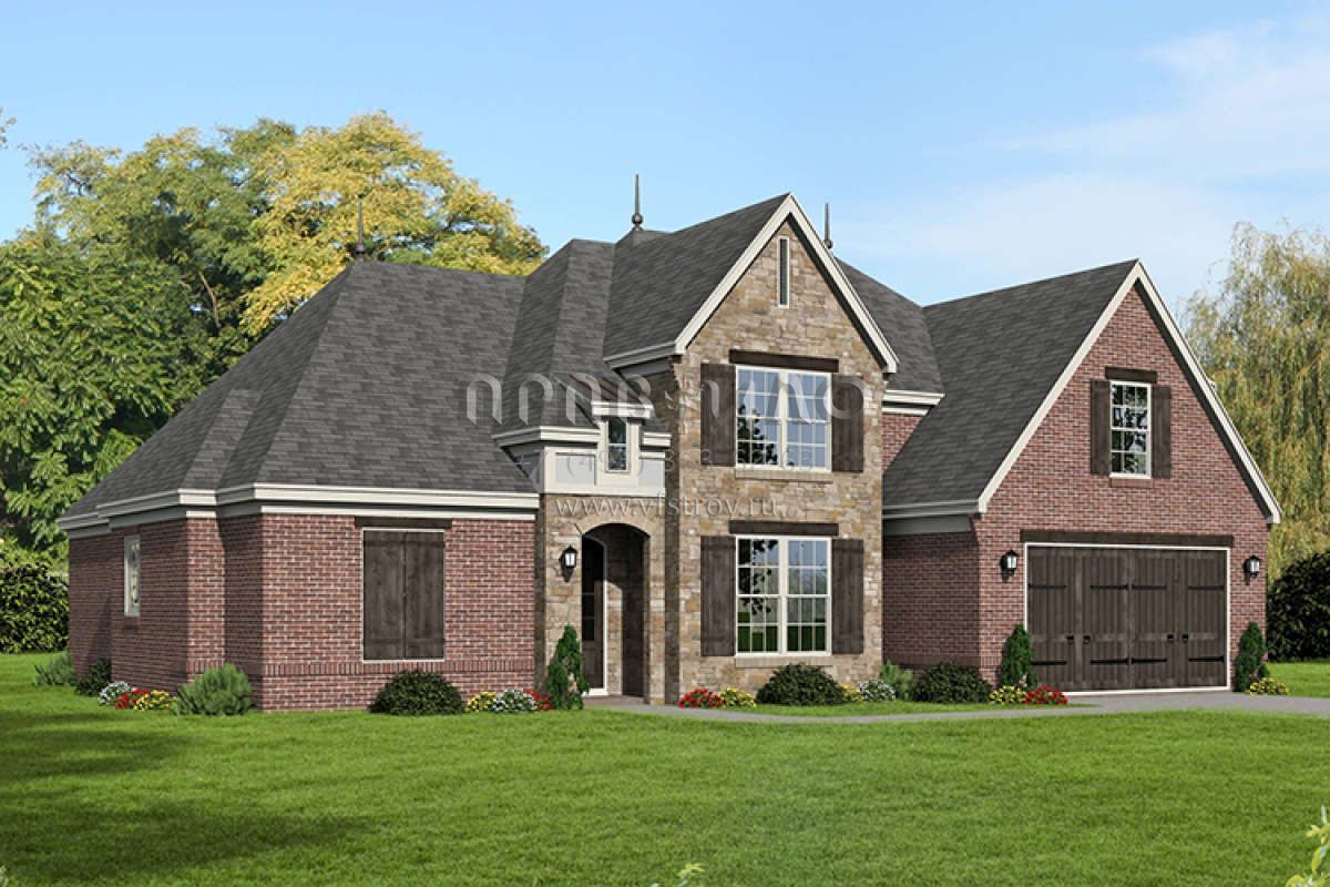 Проект двухэтажного дома с гаражом на две машины в стиле Ранчо S5-286 (940-00035)