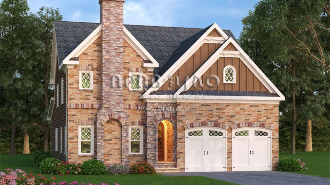 Проект двухэтажного дома с гаражом на две машины в английском стиле S5-287 (009-00239)