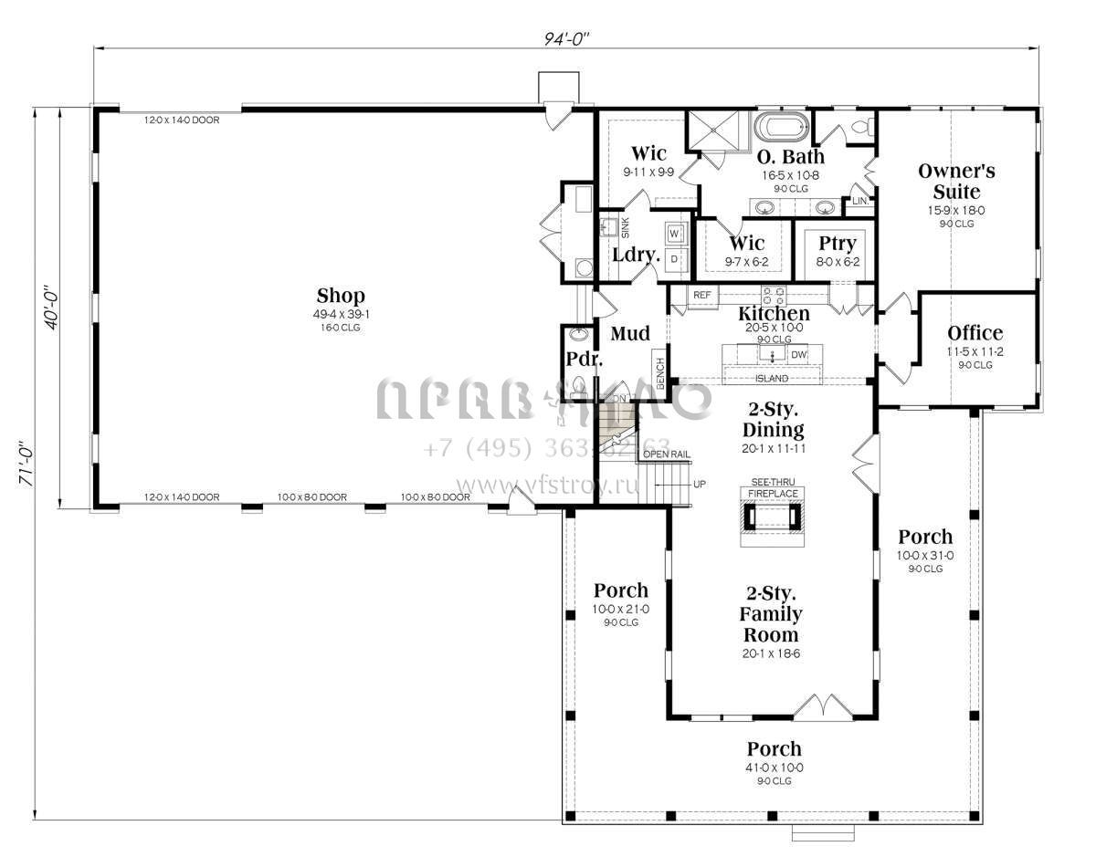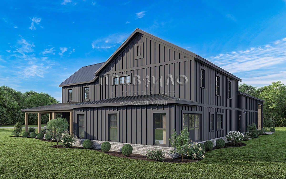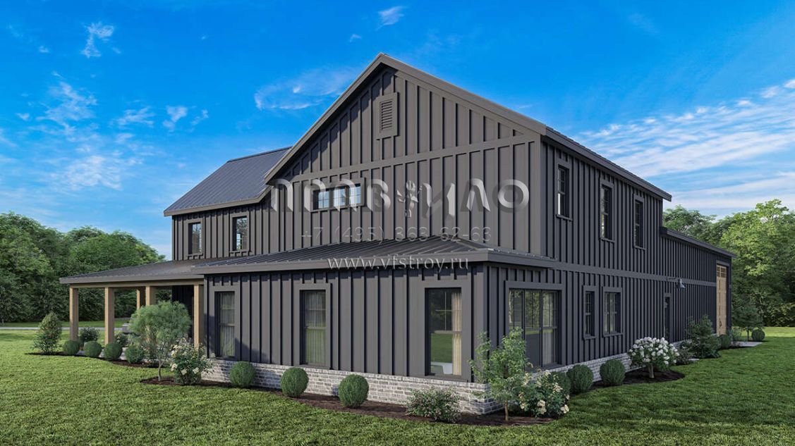 S5-287 (009-00351) Это иностранный проект, для которого требуется адаптация под нормы, действующие в Российской Федерации. Вы видите проект дома в стиле БарнХаус. В этом доме сочетаются черты сельской постройки и аскетичность лофта. Внутри жильцы смогут проводить время с максимальным комфортом. Обратим внимание, что сейчас на планировках все размеры представлены в футах. Для перевода в метры вам необходимо значение в футах умножить на 0,3048.
