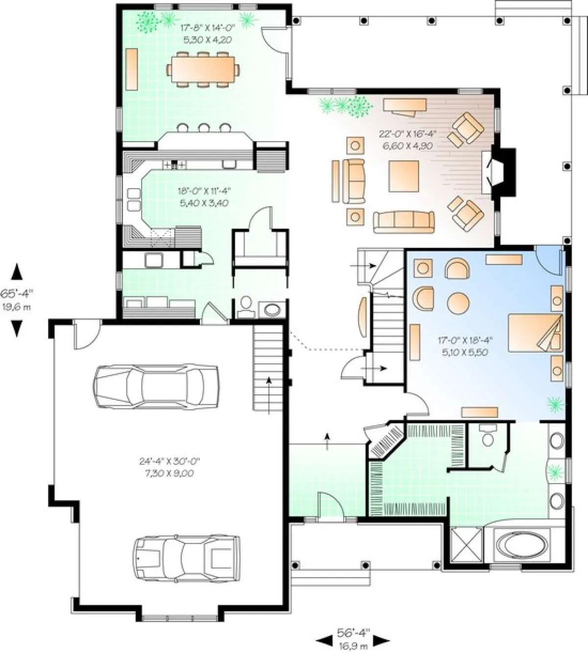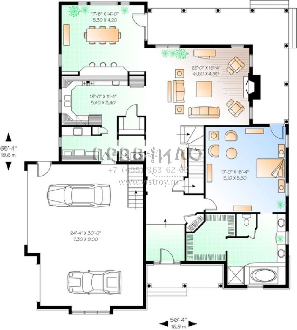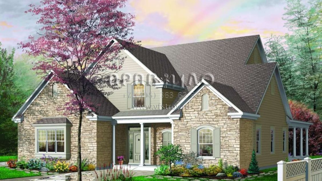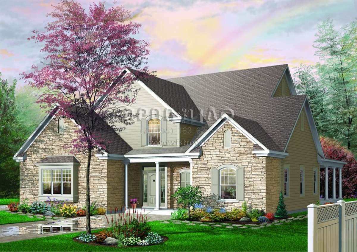 Проект двухэтажного дома с гаражом на две машины в стиле Ранчо S5-287 (034-00402)