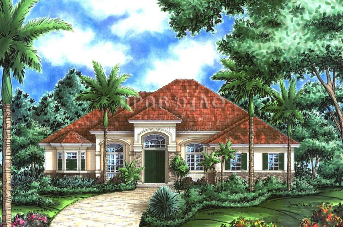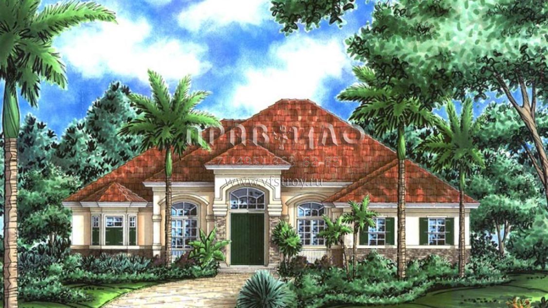 Проект одноэтажного дома с гаражом на три и более машин в прибрежном стиле S5-287 (1018-00054)