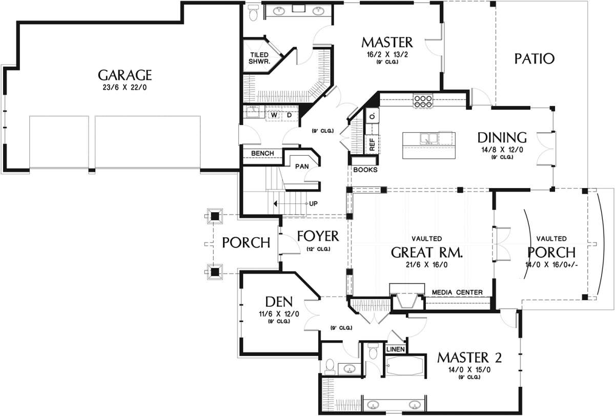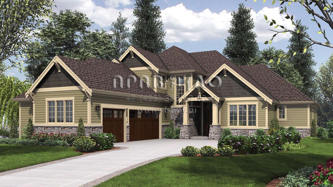 Проект двухэтажного дома с гаражом на три и более машин в стиле Ранчо S5-287 (2559-00801)