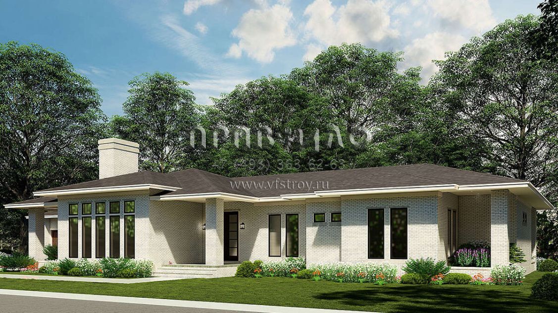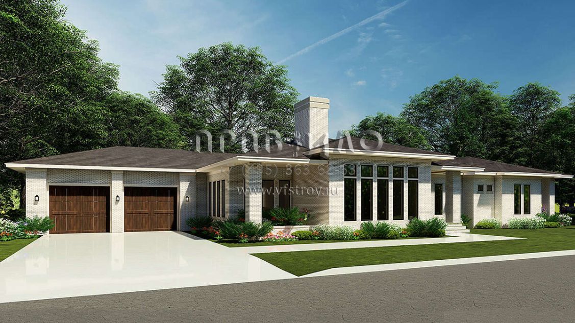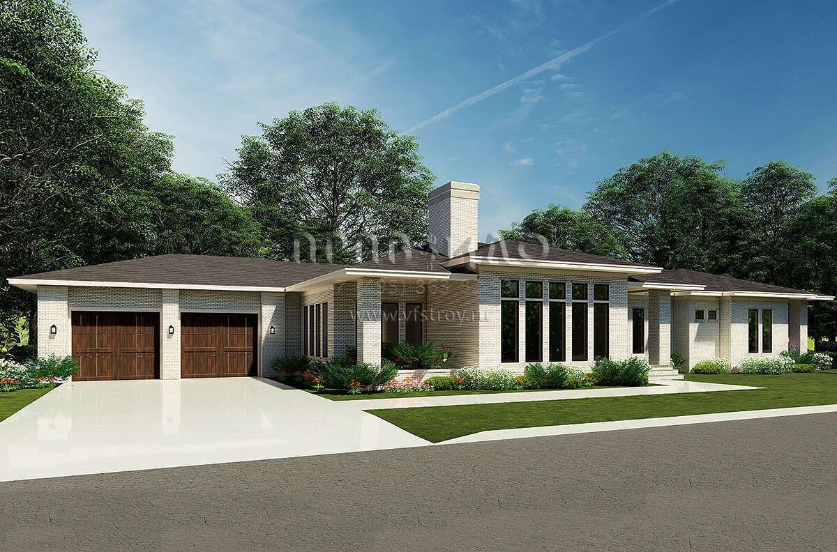 Проект одноэтажного дома с гаражом на две машины в стиле Райт S5-287 (8318-00215)