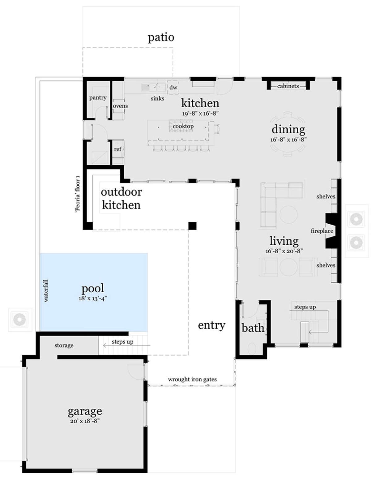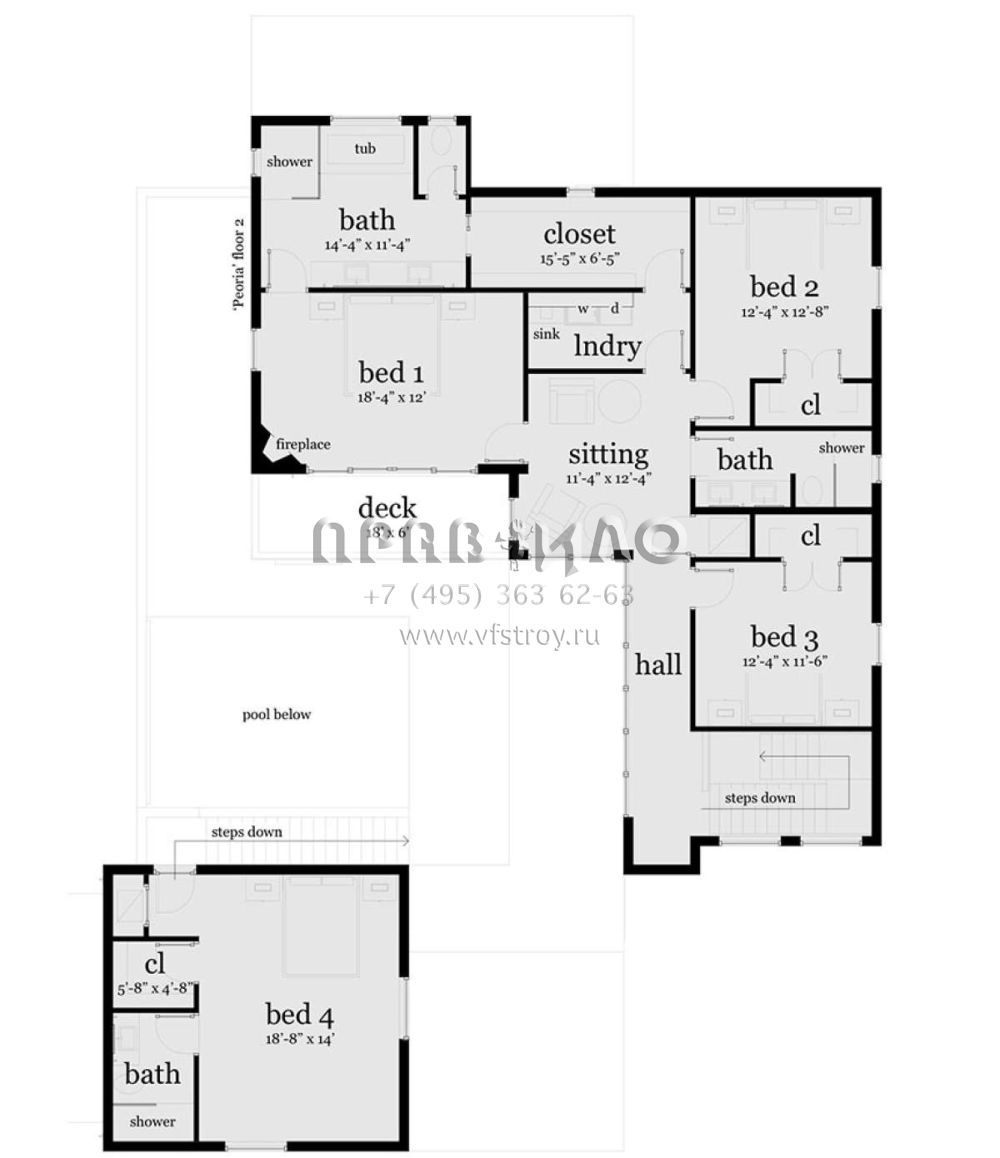 S5-288 (028-00106) Это иностранный проект, для которого требуется адаптация под нормы, действующие в Российской Федерации. Вы видите проект дома в современном стиле. В этом доме сочетаются черты сельской постройки и аскетичность лофта. Внутри жильцы смогут проводить время с максимальным комфортом. Обратим внимание, что сейчас на планировках все размеры представлены в футах. Для перевода в метры вам необходимо значение в футах умножить на 0,3048.