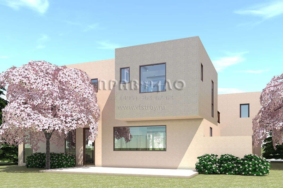 Это проект двухэтажного дома с гаражом на две машины жилой площадью 288 кв.м. Длина дома 20.7 м, ширина 15.8 м, высота 6.7 м. В доме четыре спальни и три санузла.